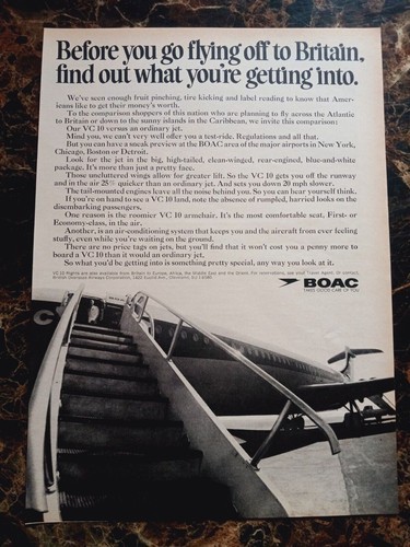 BOAC Airline VC10 Jet Plane 1968 Vintage Print Ad