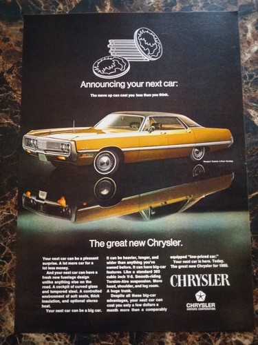 Chrysler Newport Custom Car Hardtop 1968 Vintage Print Ad