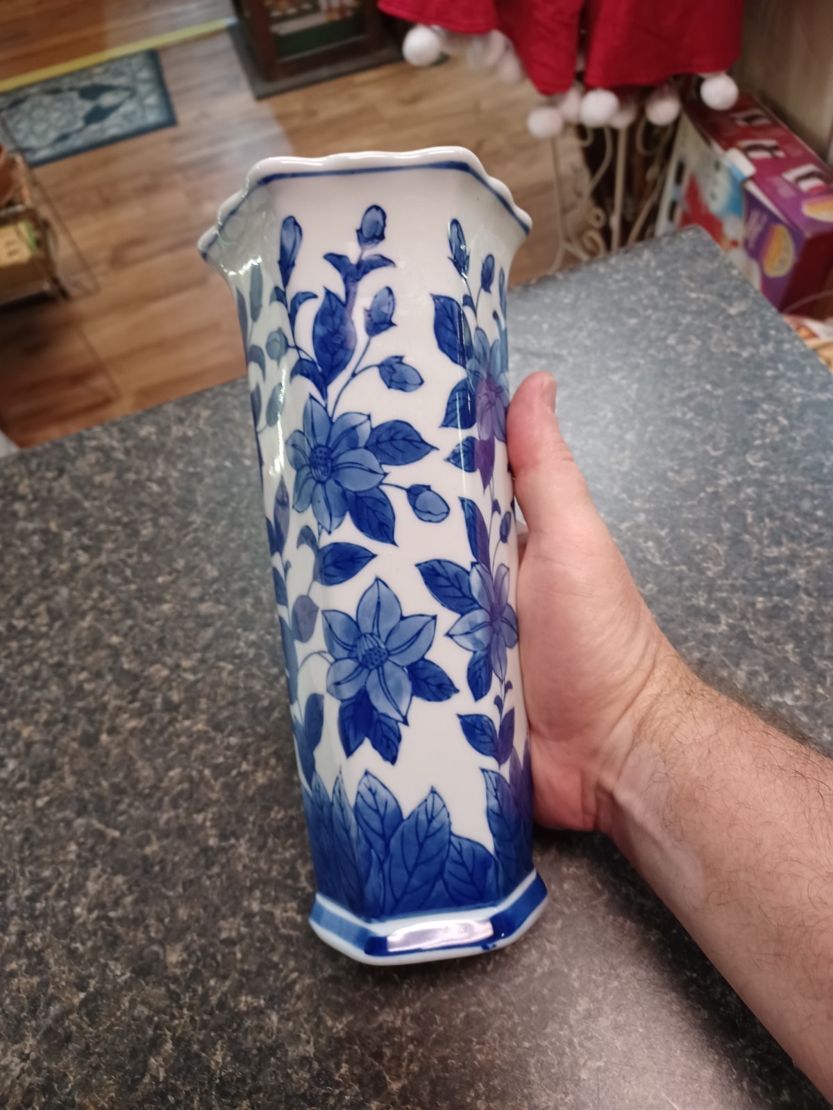 Blue White Hexagonal Vase Porcelain 9 7/8" and 45 similar items