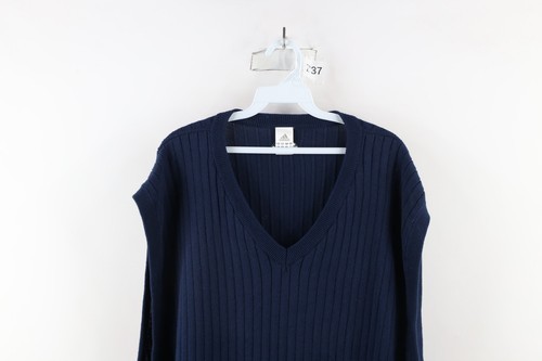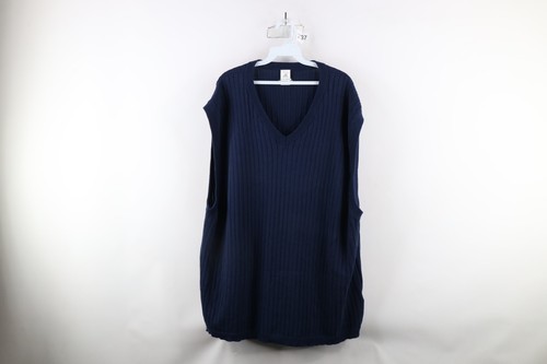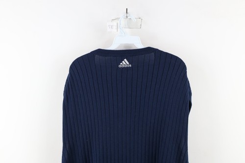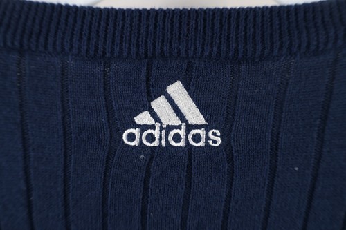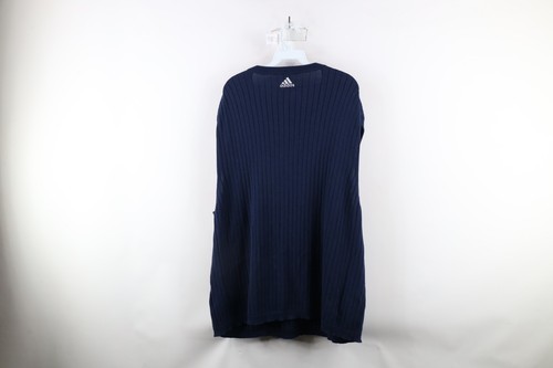 Vintage Adidas Mens 2XL XXL Faded Spell Out Cotton Ribbed Knit Sweater Vest Blue