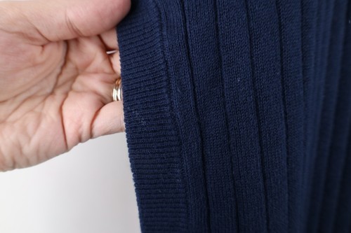 Stains front bottom right. Blemishes right armpit, back bottom. Color faded. Material stuck to fabric
