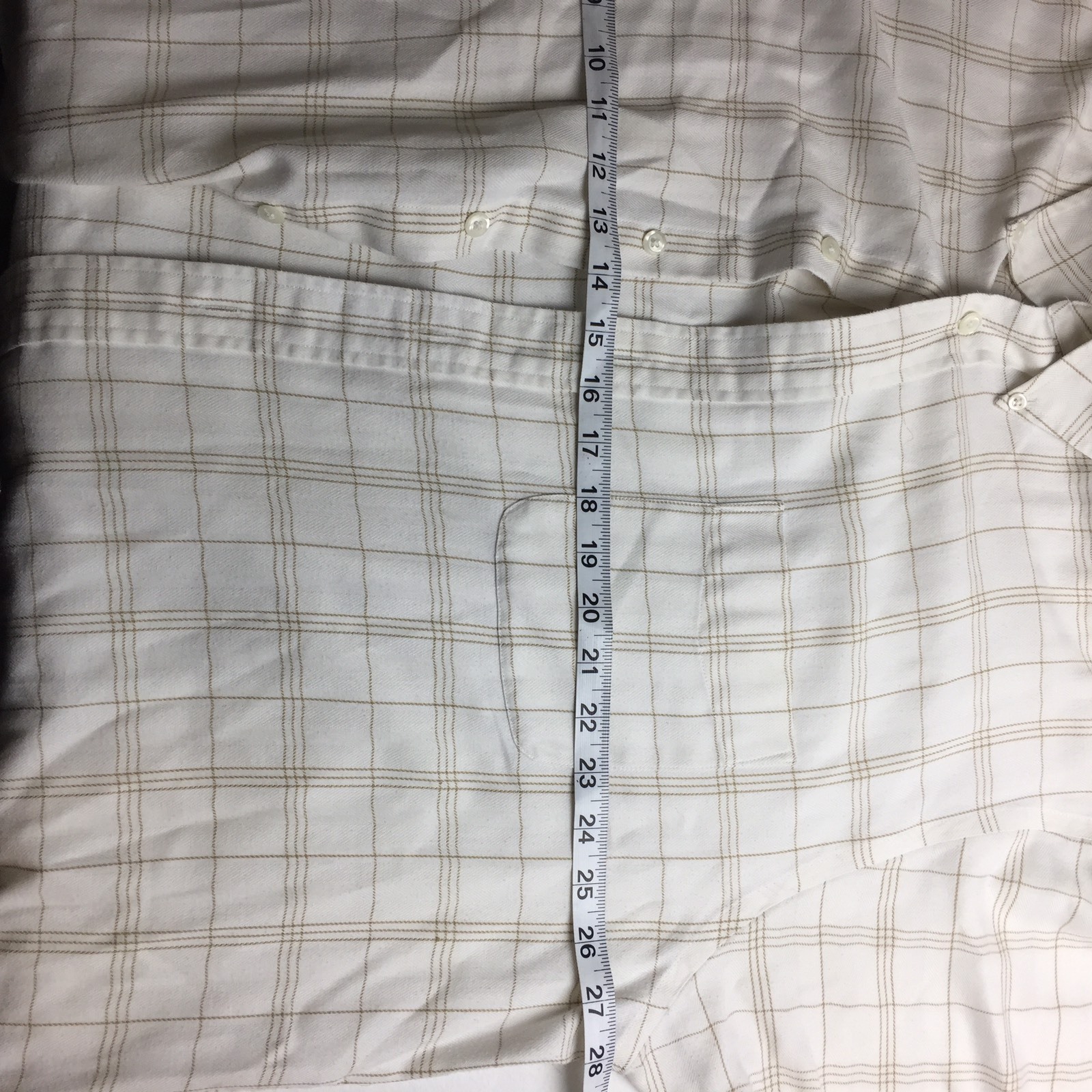 You Are Buying A ROUNDTREE YORKE Stripped Brown and White Button Up Collard Neck It is in Great Used Condition with No Damage, Stains or Rips The measurements are on the pictures but If you need more measurements please just ask and I will measure for you and I will try and contact you as soon as possible
