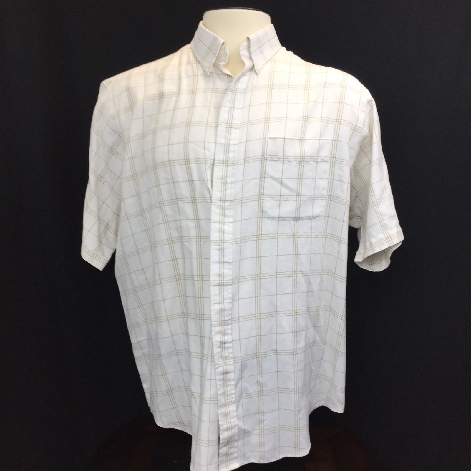 Roundtree & Yorke Men's Brown Stripped Button-up Short Sleeve Shirt, size XL,