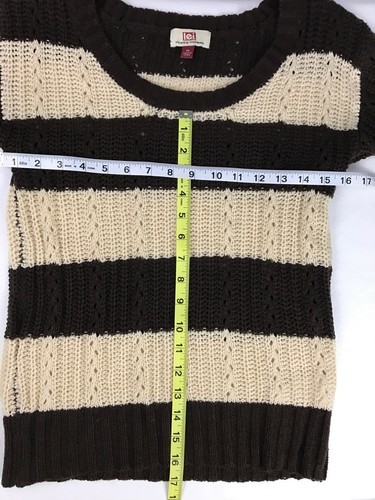 You Are Buying A l.e.i.: Brown Off White Striped Sweater - Jr. medium It is in Great Used Condition with No Damage, Stains or Rips If you need measurements please just ask and I will measure for you and I will try and contact you as soon as possible