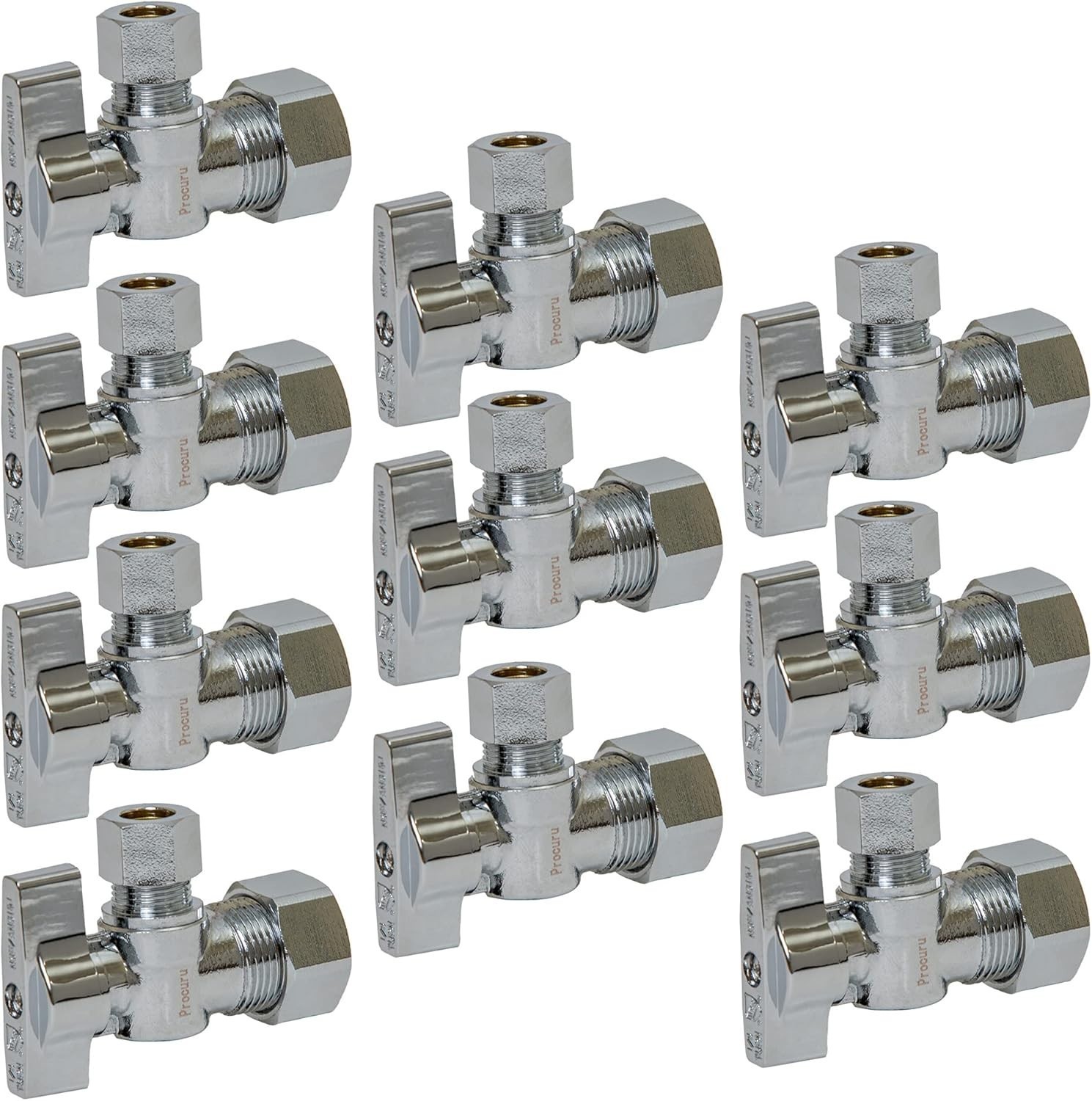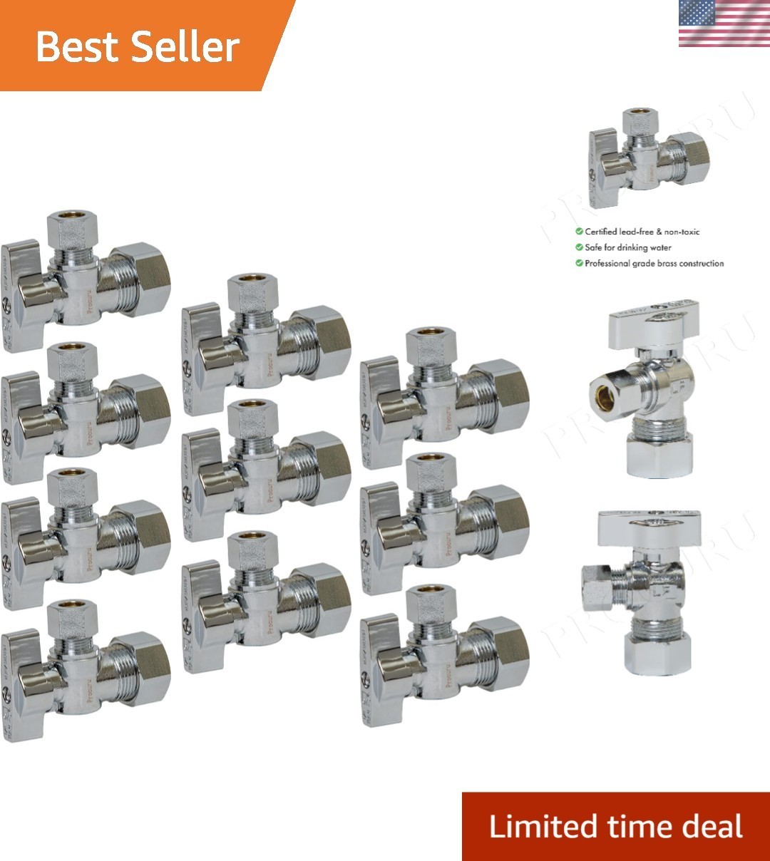 10 Heavy-Duty Angle Stop Valves - 1/2" Nominal, 3/8" Compression, NSF Certified