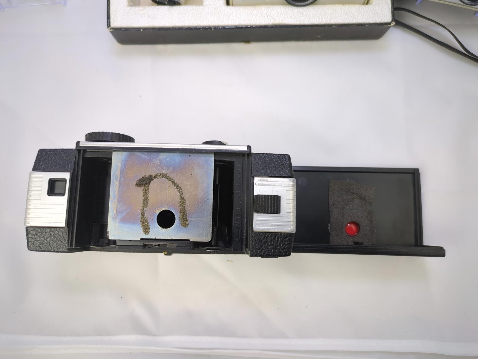 The Instamatic cameras come with original accessories and packaging, showcasing the charm of mid-20th century instant photography.