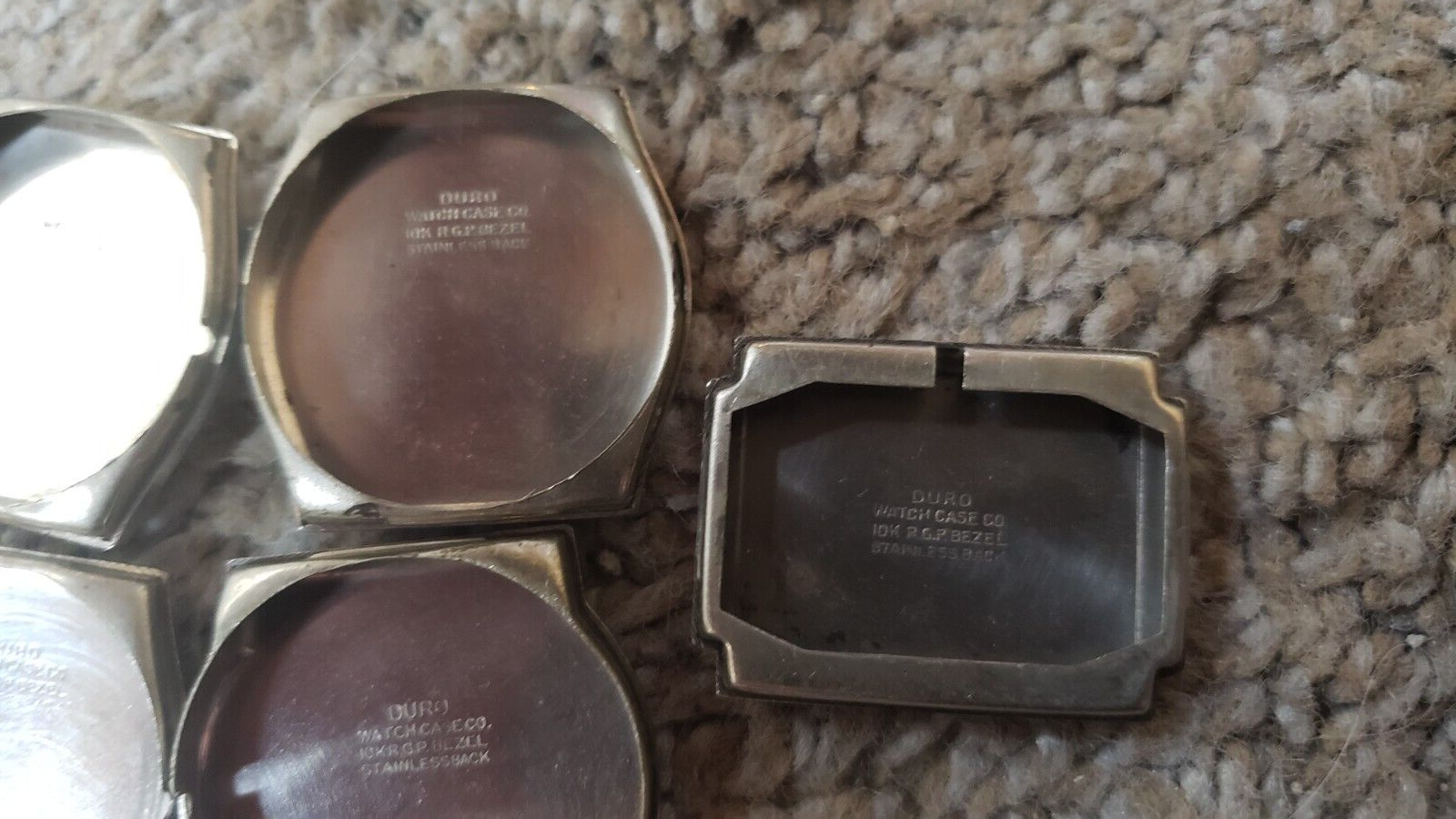 Raro vintage di 5 La custodia per orologi da uomo Duro Ladies degli anni '50 degli anni '50 Acciaio da cornice RGP Nota: questa e una rara custodia vintage di orologi qui - questo e per parti/riparazione non so il modello esatto che va, se sai qualcosa fammi sapere. Tre di questi sembrano uguali e altri due unici Questo e un pezzo di storia. Se ti piacciono i vecchi orologi, questo e un bel pezzo da spettacolo. Se fissi i vecchi orologi, sei fortunato. Non sono un esperto di orologi. Ho comprato un sacco di vecchie parti di orologi da un'azienda di riparazione di orologi familiari che e andata all'asta. Erano in attivita da 100 anni. Per favore, controlla le mie altre parti di orologi vintage che elencheremo di più nel prossimo numero di mesi. Ti daro un affare se vuoi più ordini !!