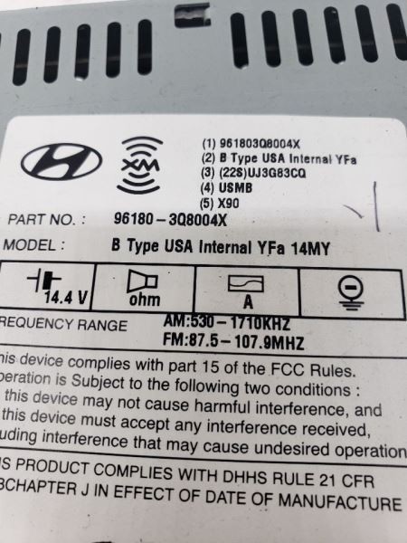 SONATA 14 w/hybrid option, receiver assembly, w/o navigation; (AM-FM-stereo-CD-MP3-satellite), US market, ID 961803Q800