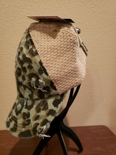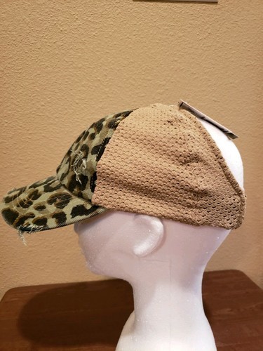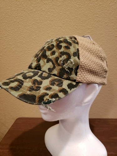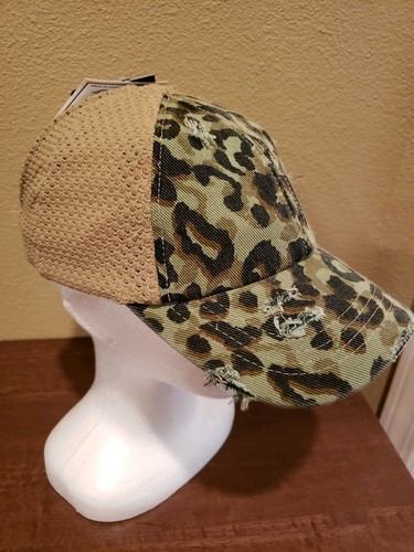 C.C. Green Leopard Print Distressed Hat Vintage Pony Cap with Knit Mesh Back