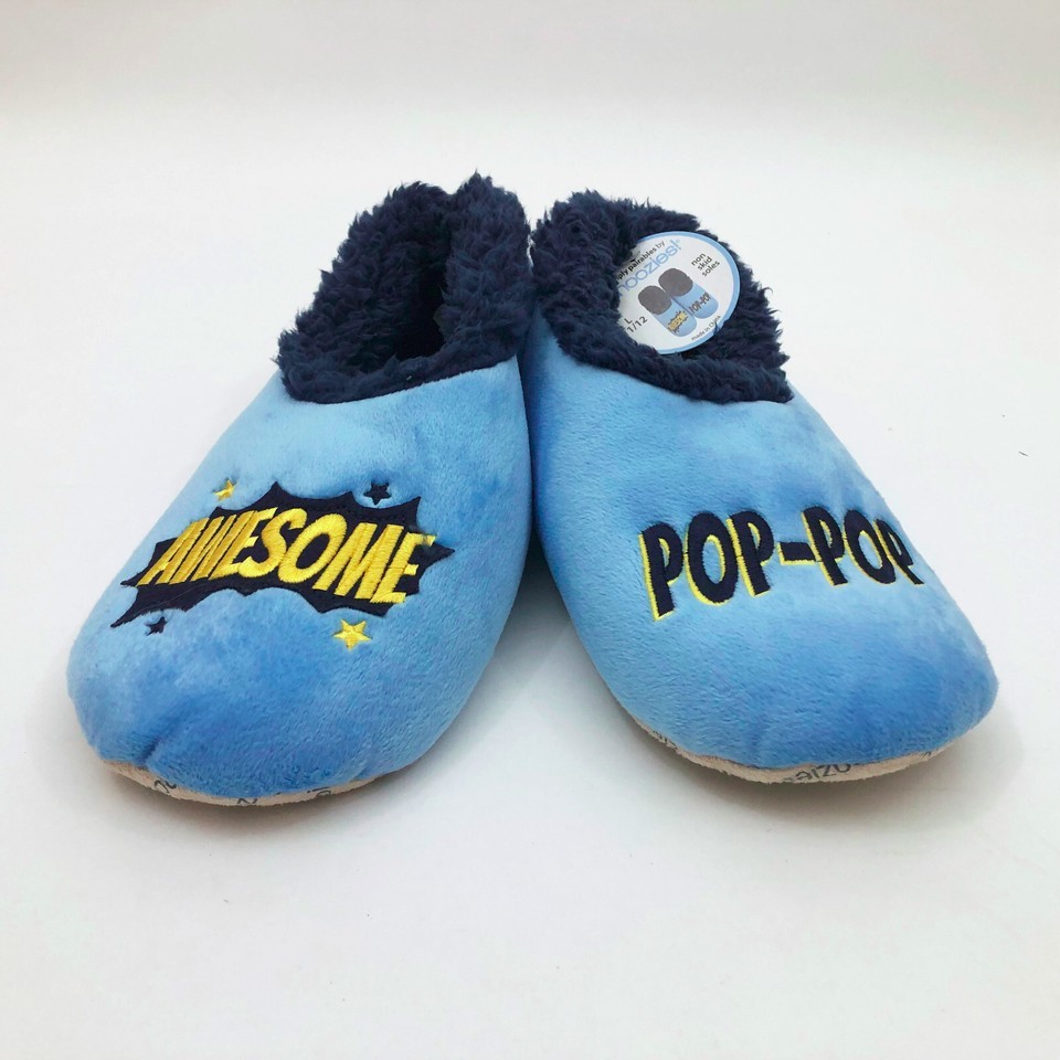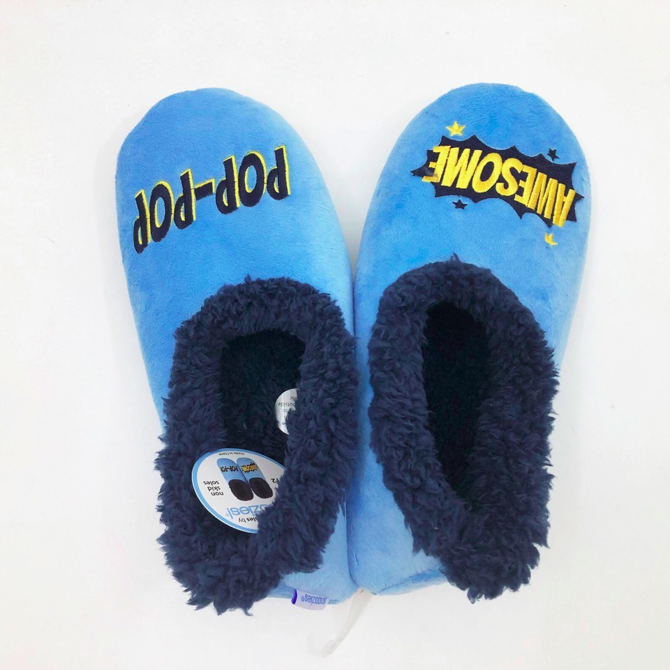 Snoozies Men's Awesome Pop Pop Large 11/12 Blue Non Skid Soles