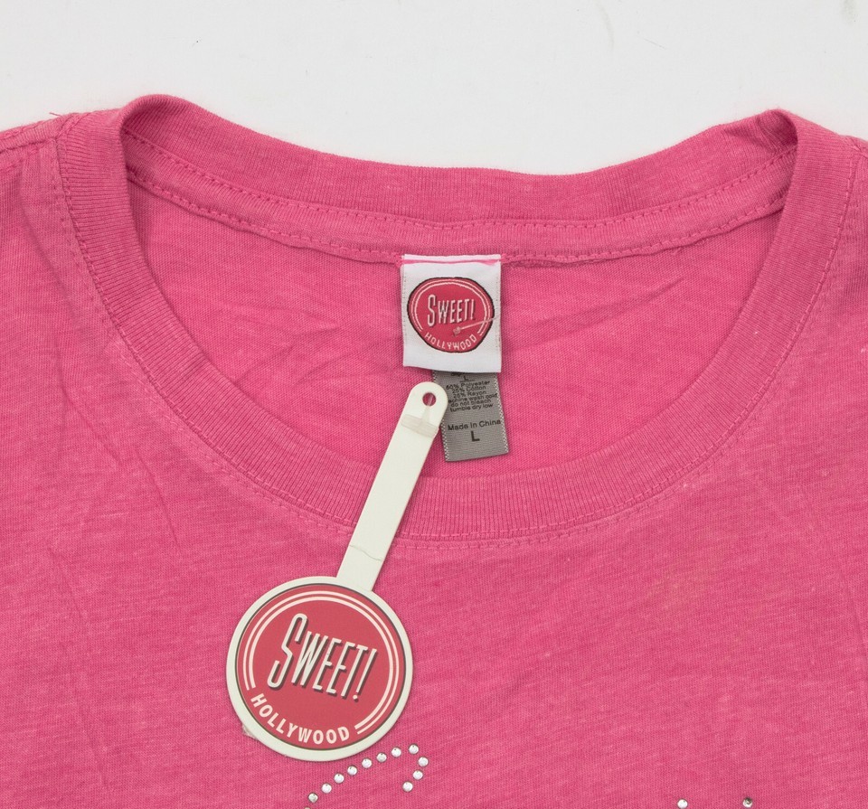 Fun and sassy pink T-Shirt with the work sweet in silver sequins across the top. Beneath that are legs done in multicolored sequins.