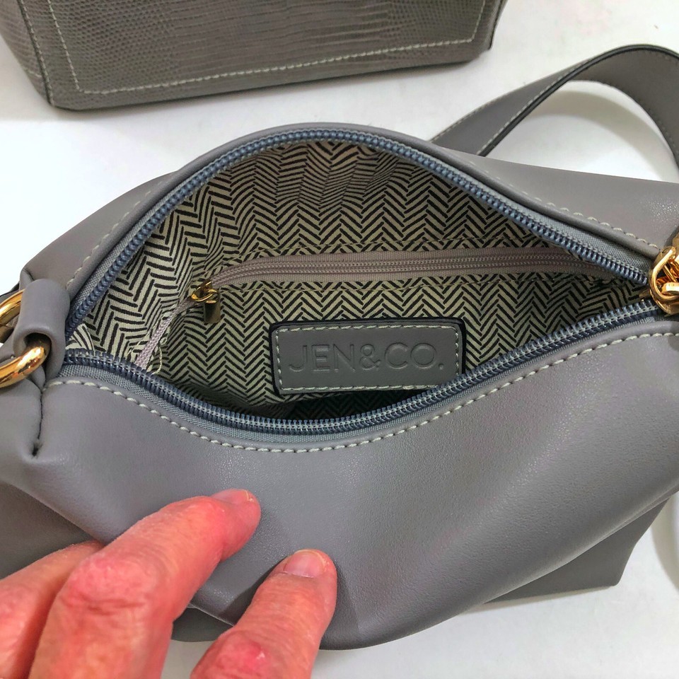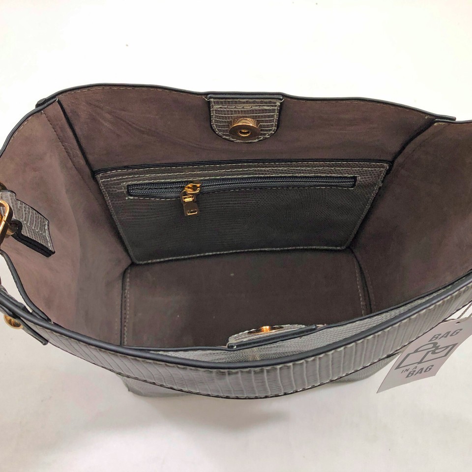 Jen & Co Bag in a Bag Abby Vegan Leather Lizard Bucket Gray Color
