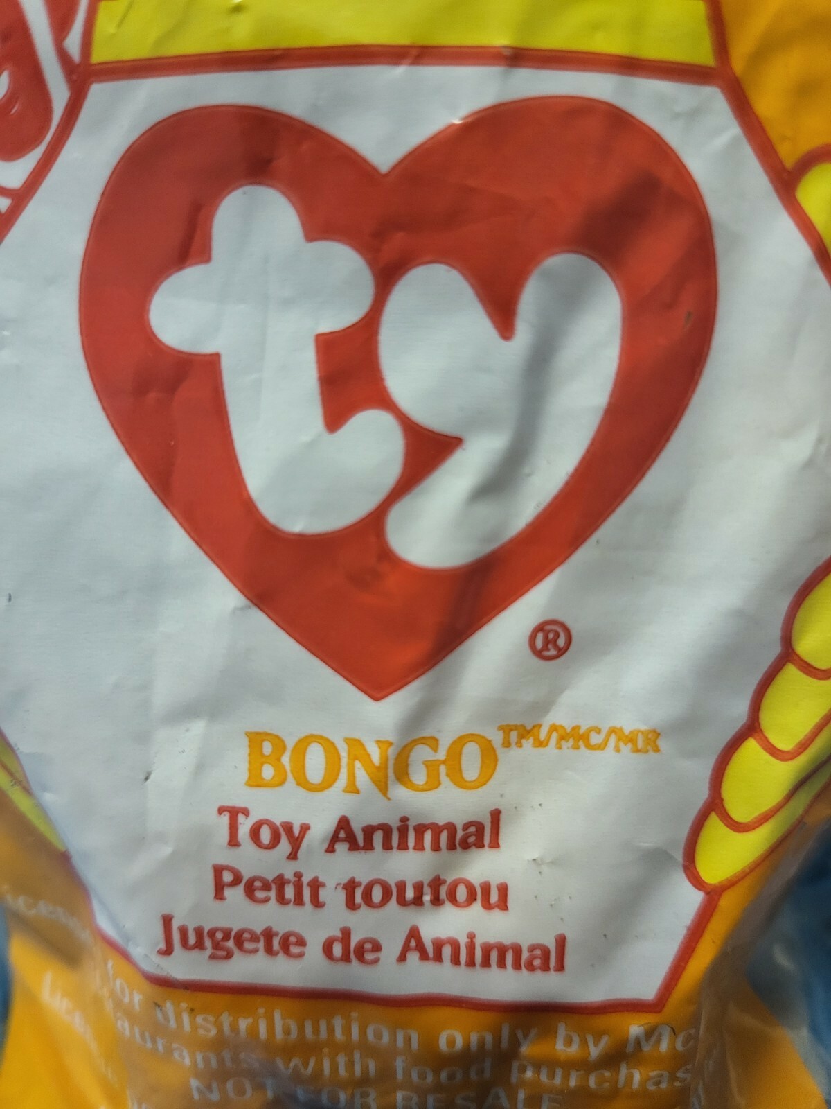 The product is a TY Teenie Beanie Baby from 1998 featuring Bongo the Monkey. This collectible plush toy is part of the McDonald's Happy Meal promotion that year. With its new in package (NIP) condition, this item appeals to collectors and fans of vintage Ty toys. Recommended for ages 3 and up, this adorable Bongo Beanie Baby is a sought-after piece for enthusiasts of plush toys and memorabilia.