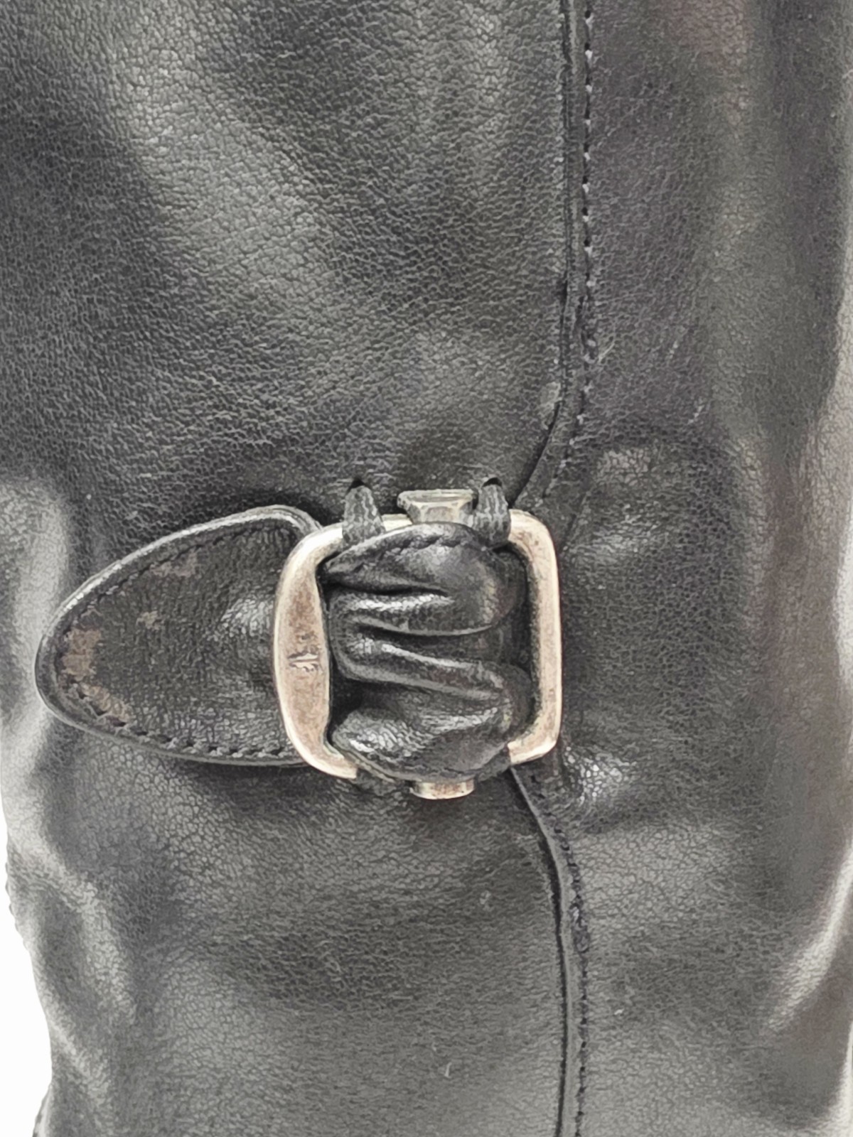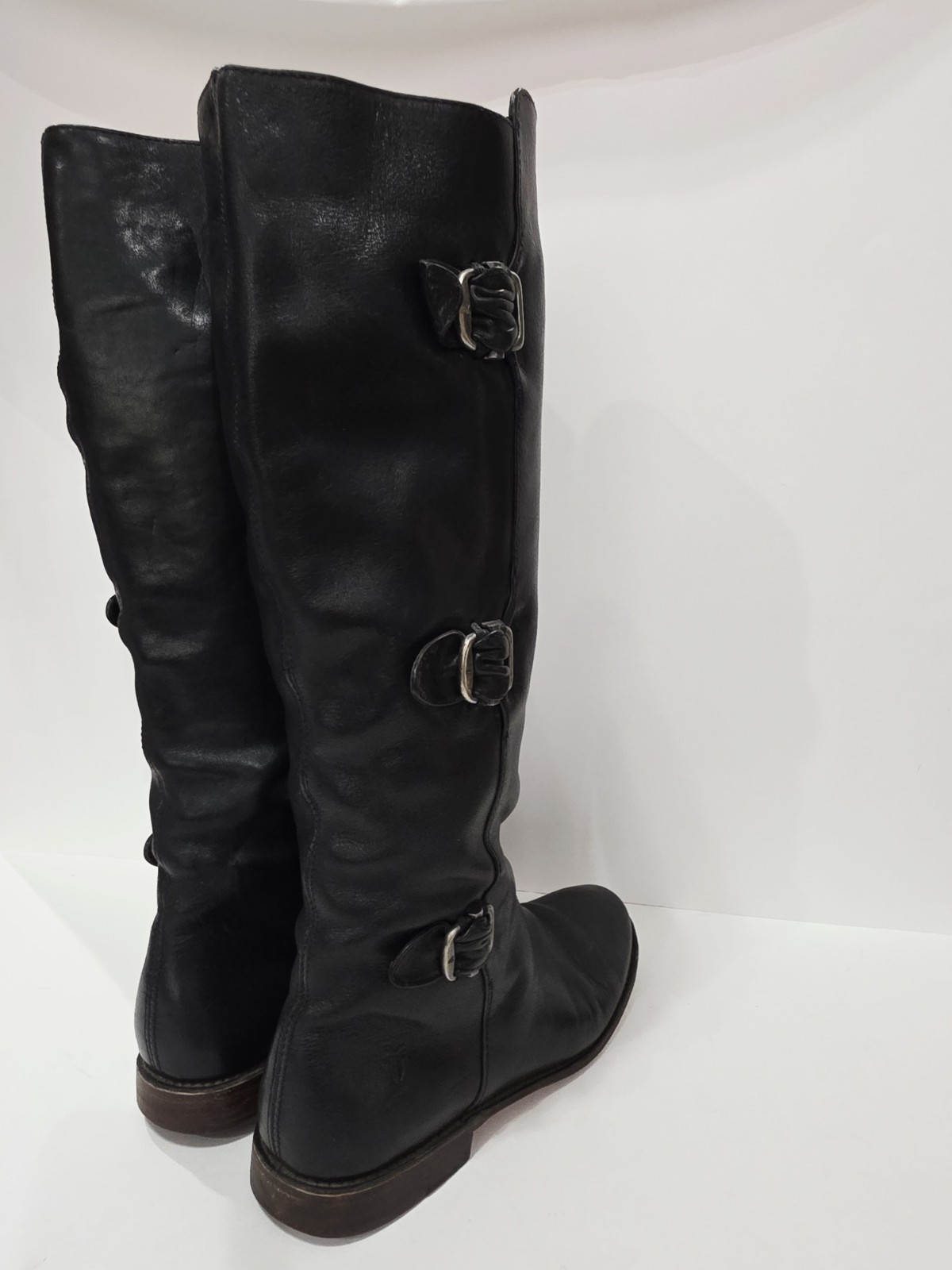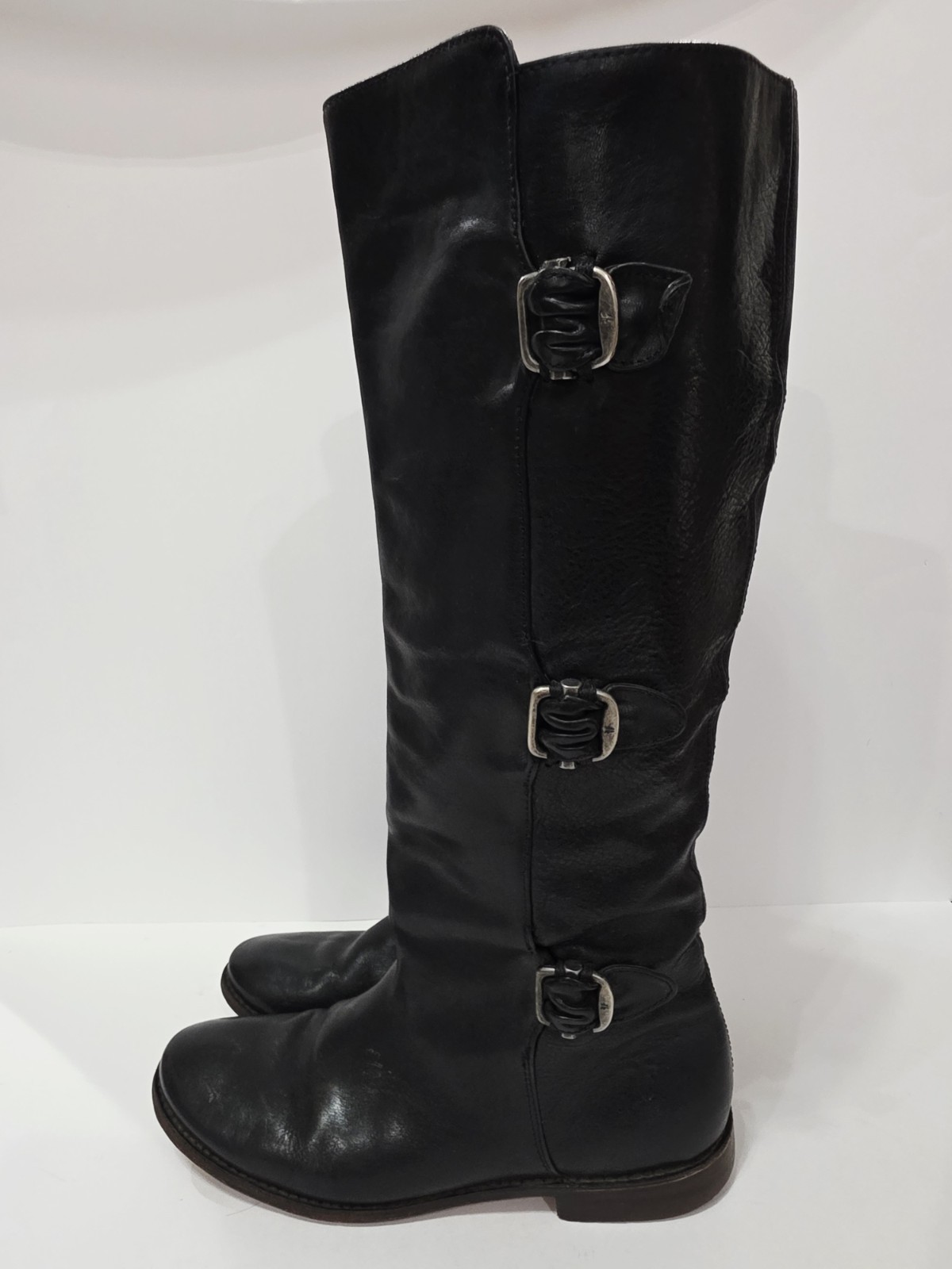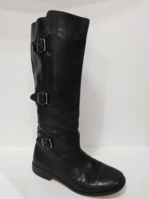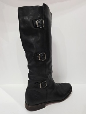 Frye PAIGE 77066 Black Leather Boot Tall High Pull-On Riding Buckle 7 B Used