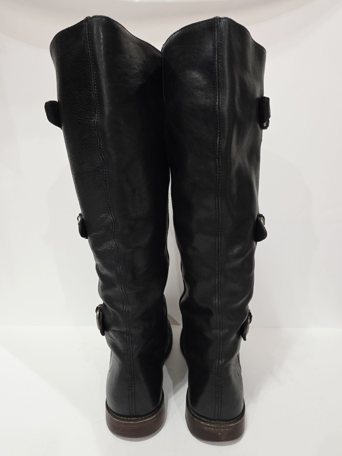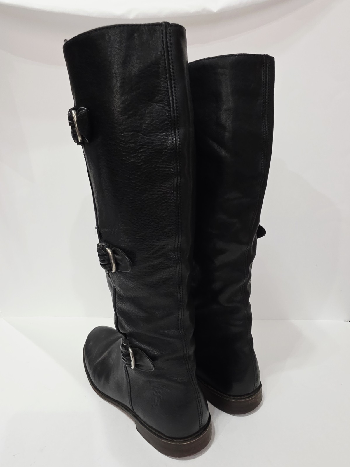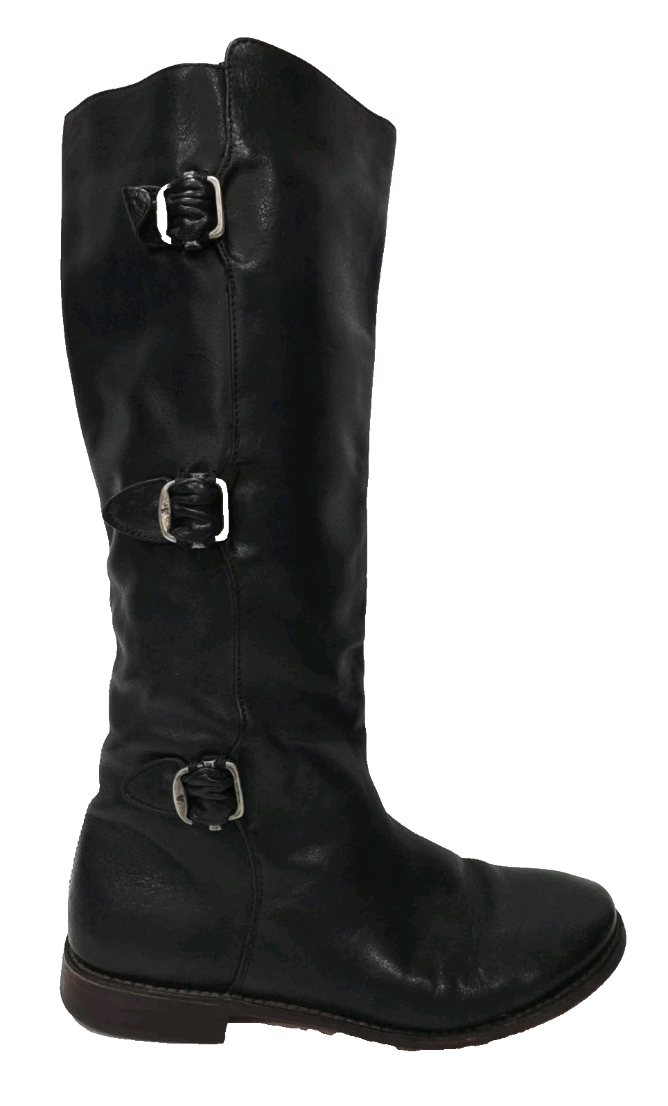 Frye PAIGE 77066 Black Leather Boot Tall High Pull-On Riding Buckle 7 B Used