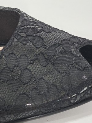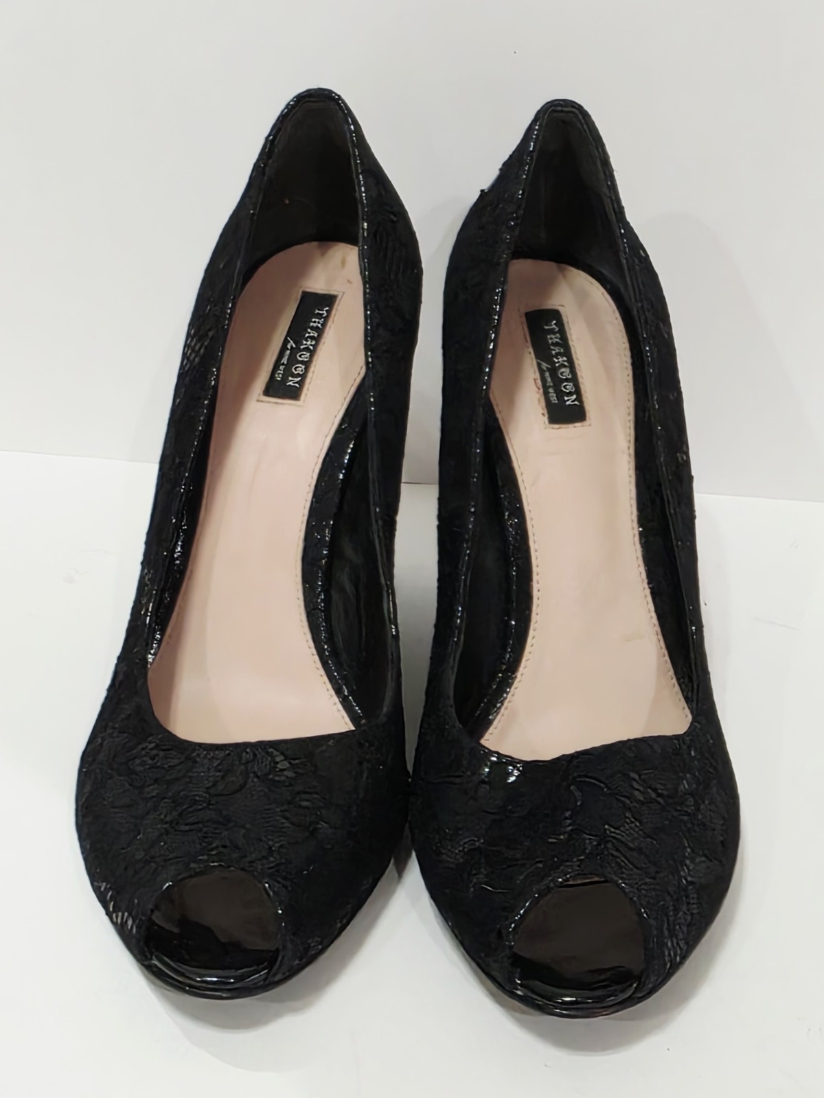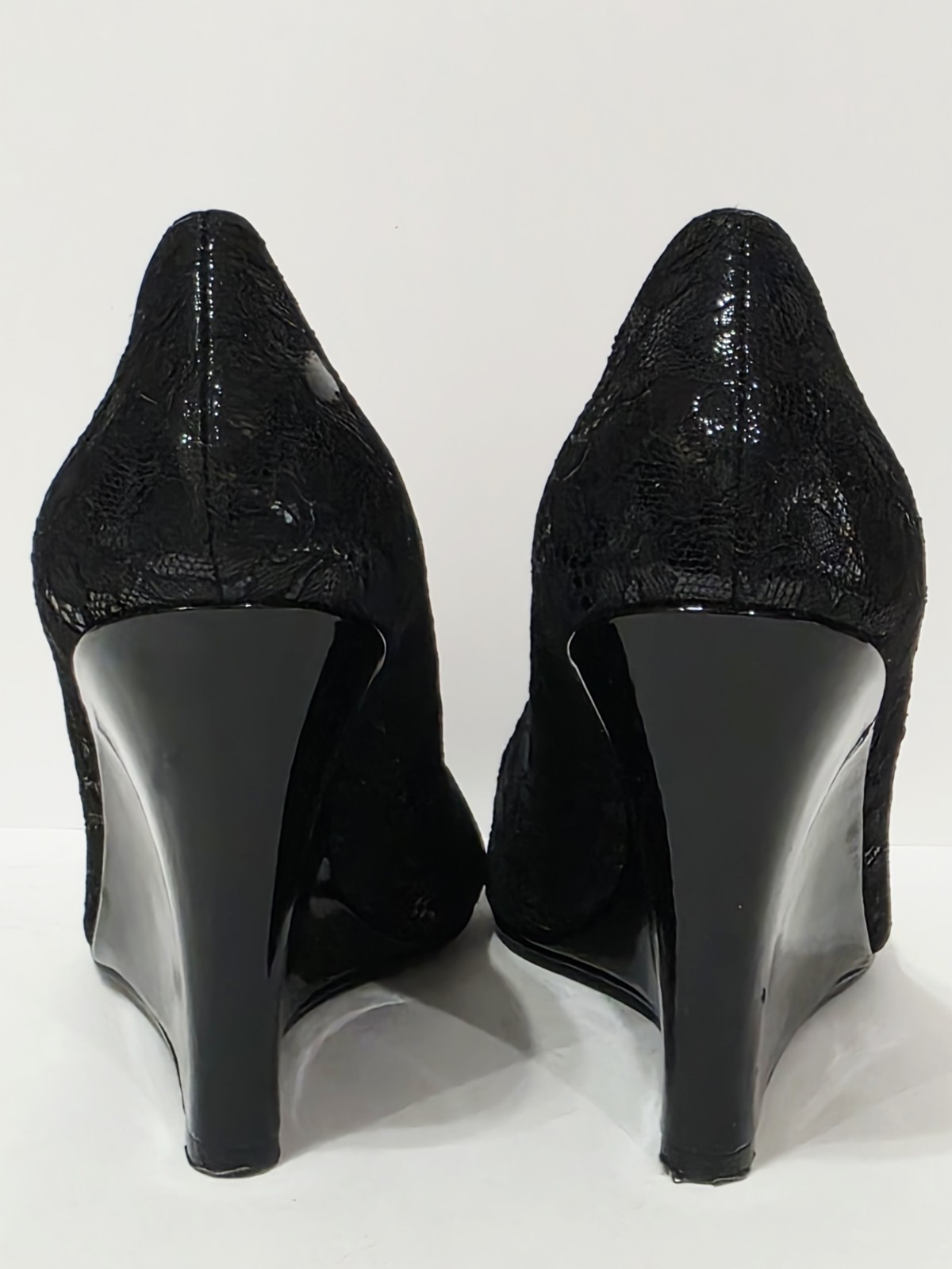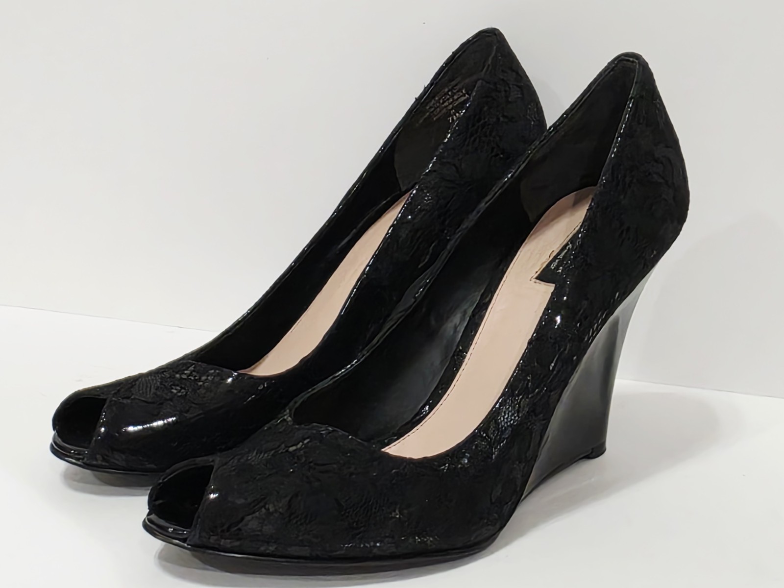 1 Used Pair No Box By Thakoon for Nine West BLACK LACE Patent Leather Wedge Loafer Heel Pump Peep Toe 7.5 M Used! (Box #17)