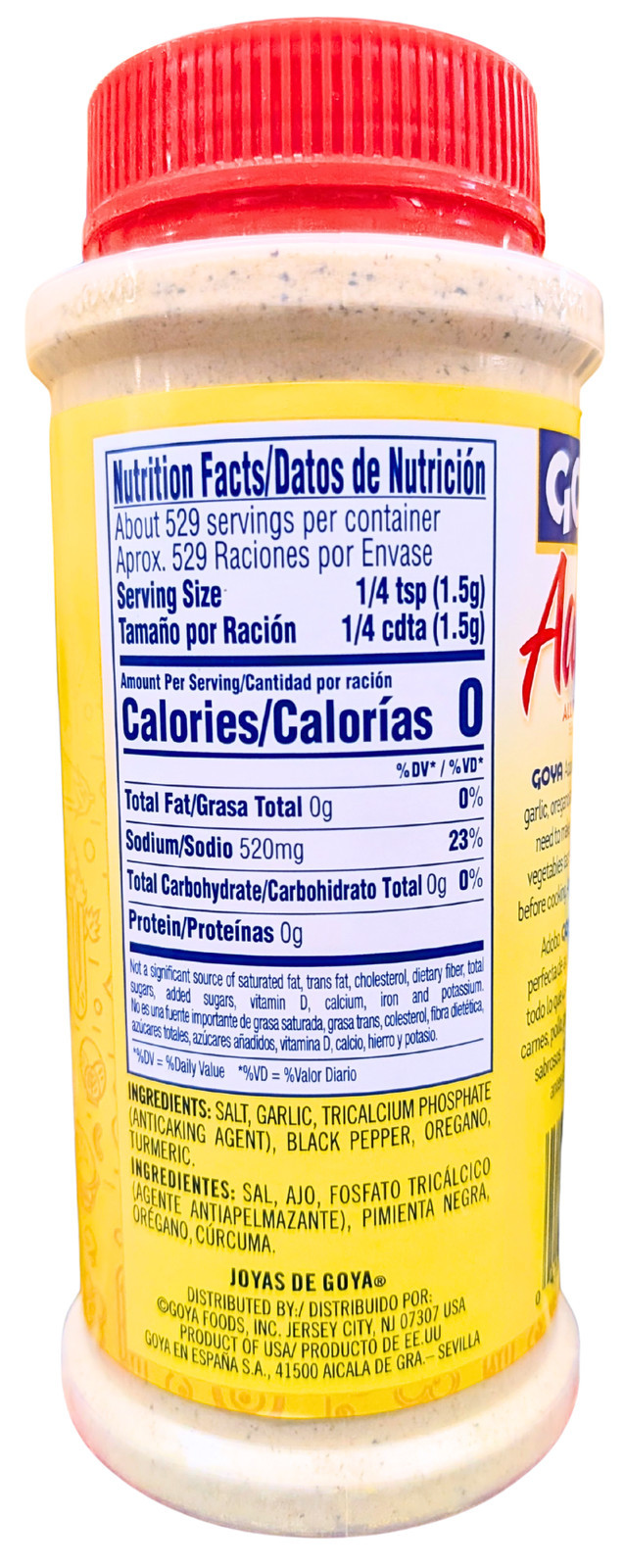 Goya's Adobo Without Pepper Seasoning is a must for my kitchen, and I also keep an extra shaker at my office. Not only does it add salt and garlic flavor to just about any food, but it includes oregano and turmeric that fight free radicals in my body. I shake this seasoning on my spring mix salads, and they taste so good I don't need any salad dressing - which saves me lots of calories! Of course it's great on my steak, burger, chicken, and fish, yet it's also tasty on hard-to-season vegetables like zucchini or cucumbers. A little goes a long way, so it's also economical. Once you try it, you'll be buying the large size too.