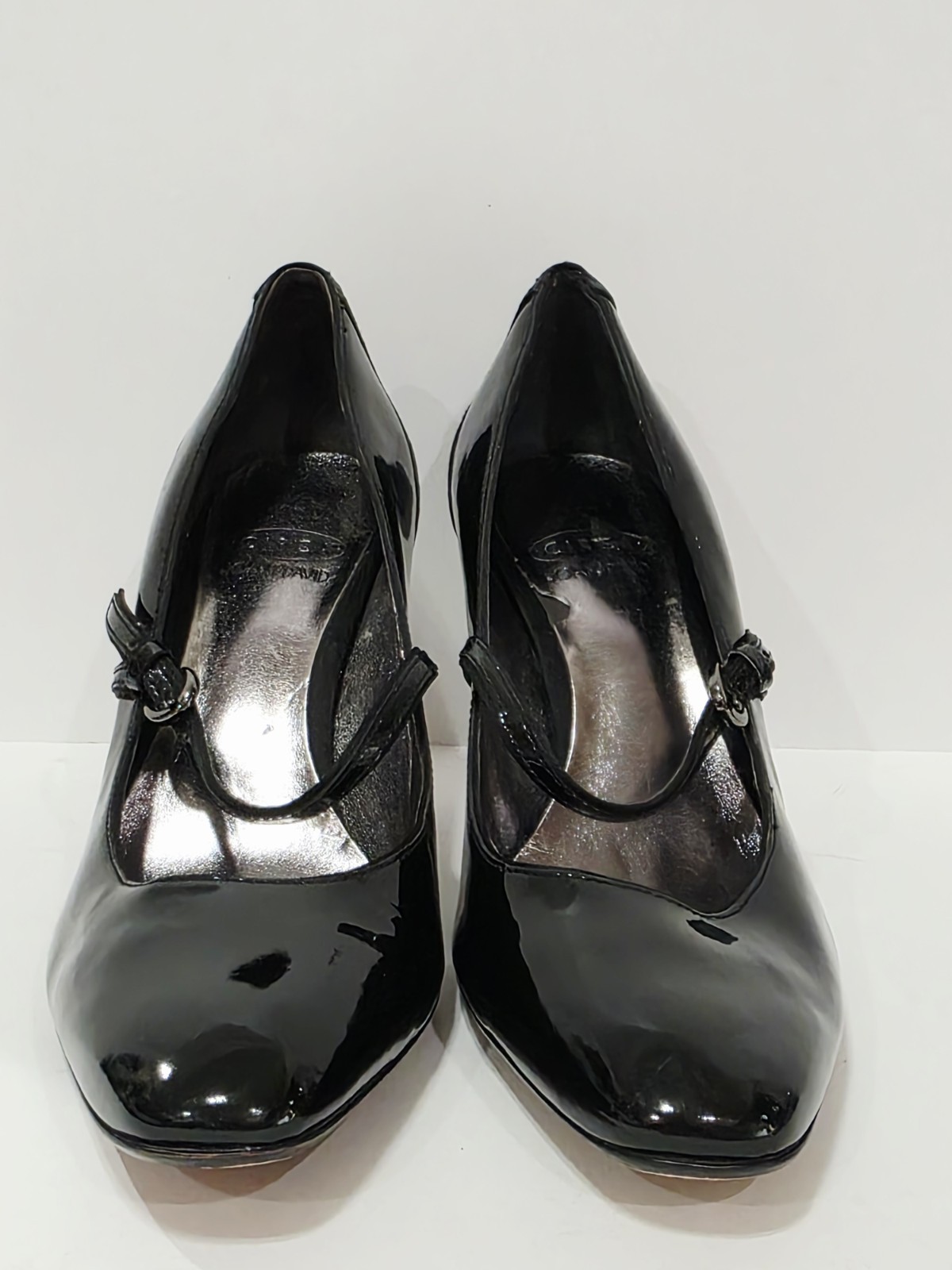 1 Slightly Used Pair No Box By Circa Joan David CJCECILIA Black Patent Leather Upper and Leather on Back Heel Pump Charcoal Buckle Strap 6 M Used! (Box #20)