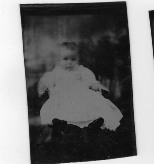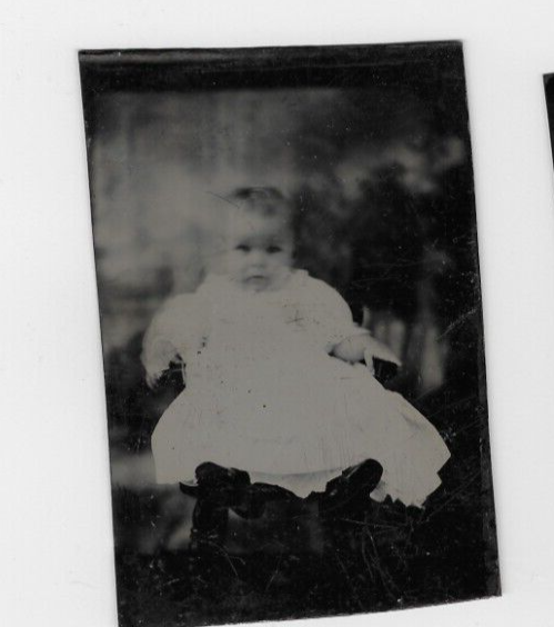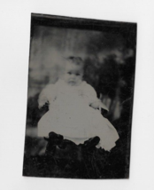 Antique Tintype Photo of Baby Toddler Portrait with White Dress