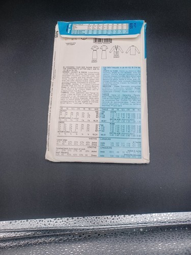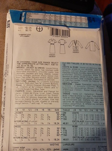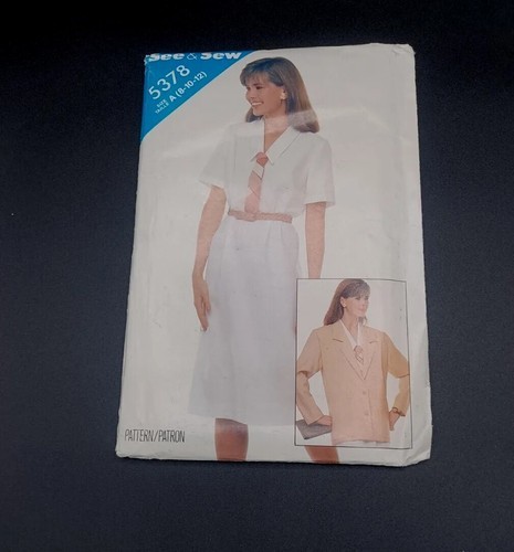 See & Sew Pattern 5378 Misses' Loose-Fitting Unlined Jacket & Dress 8, 10, 12 UC
