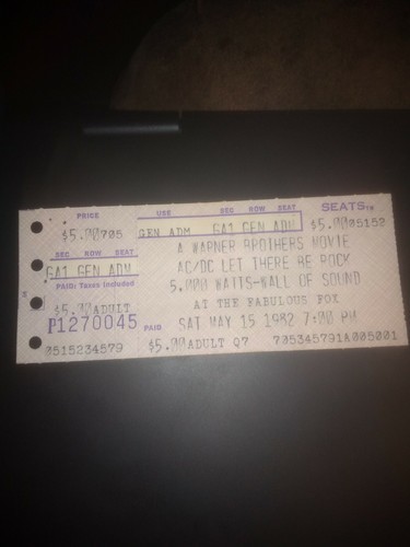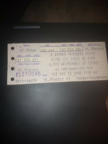 A Warner Brothers movie Ac/Dc let there be Rock 5/15/1982 ATL @ the Fabulous Fox. Shipped with USPS First Class Package.