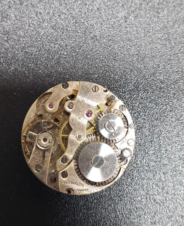 Vintage 50's 40's Hellbros Hell Bros Watch Fque Welta movement Gold Black Dial see condition above. I am not an expert on these. We got a huge supply off a watch maker that went out of business years ago. This is nice watch here. Not sure where the rest of this is. But hopefully you can use this!!!! This should be good lot for watch maker / repairer. this may need to be cleaned up, but does not have scuffs or scratches Please check out my other vintage watch parts and crystal. we have lots of them and more to list. I will give deals on multi-orders!!!! FREE SHIP IN USA