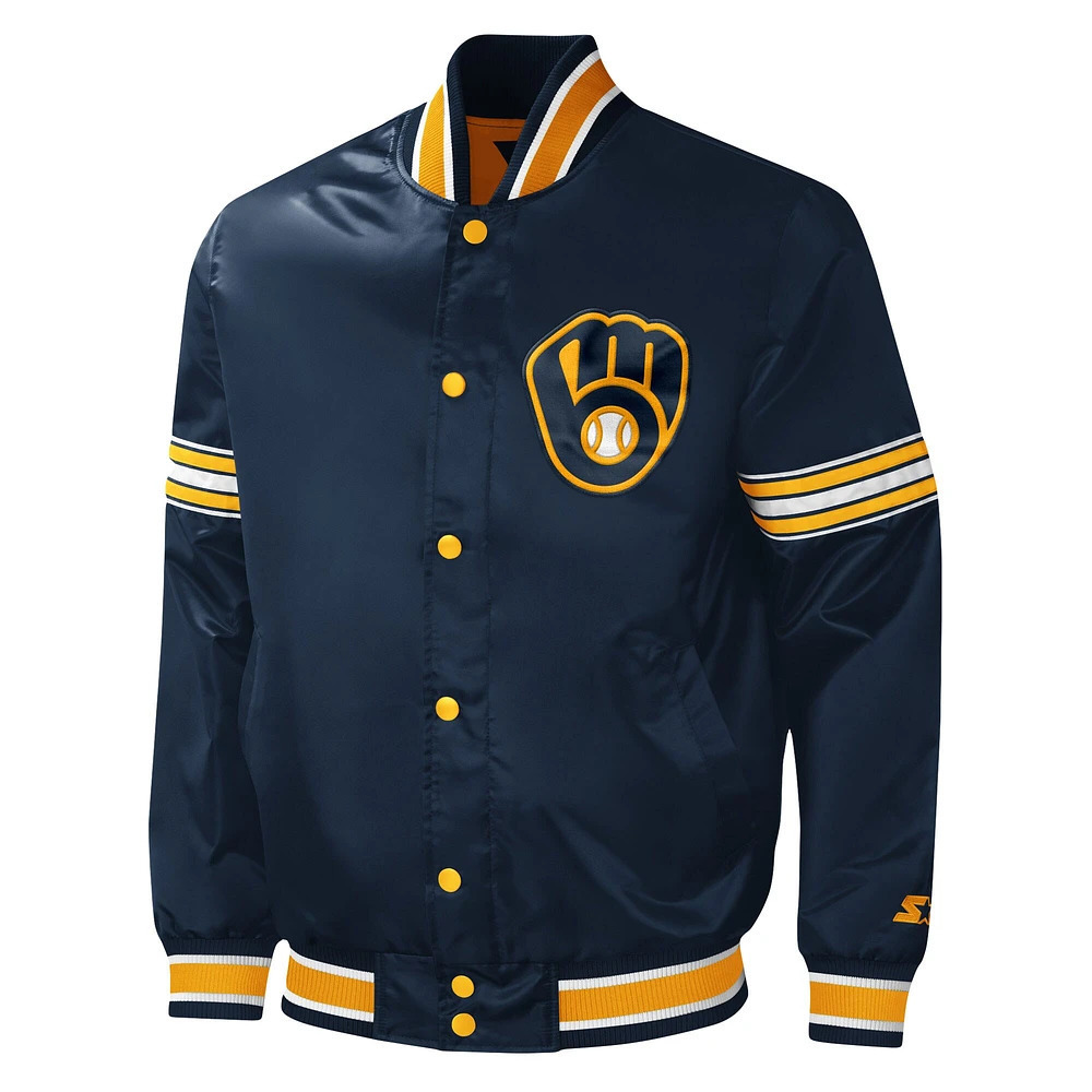 Brewers Varsity Navy Blue Satin With Yellow White Stripees