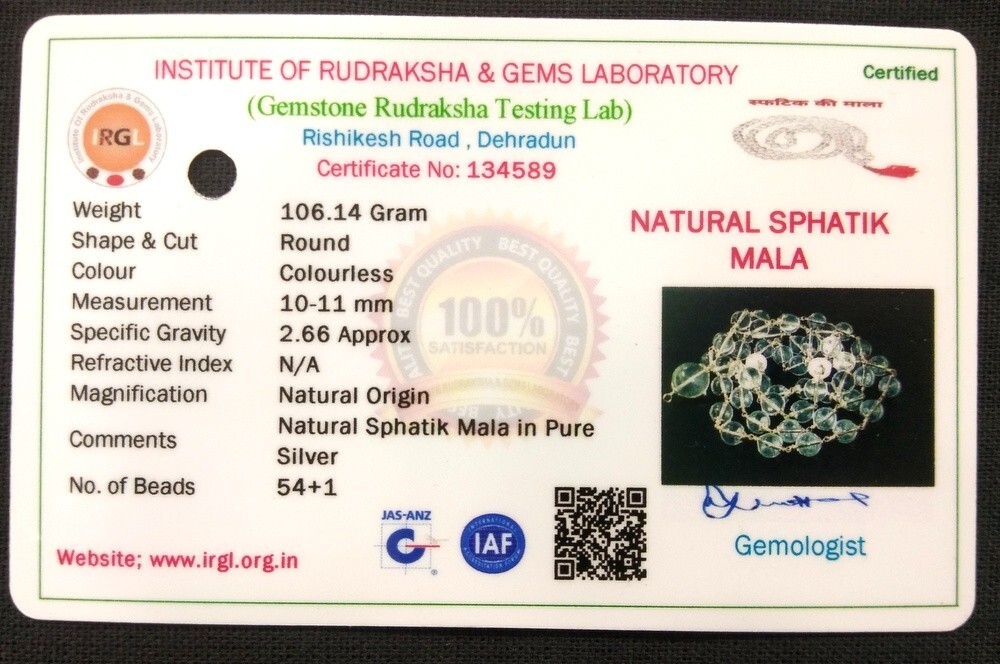 Sphatik Mala In Pure Silver - 10 mm - 54+1 and 49 similar items