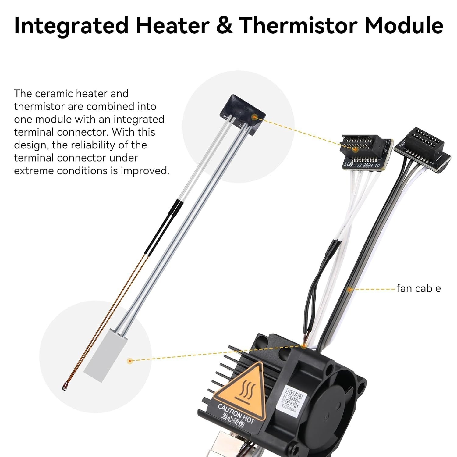 Fast Heating Accurate Temperature: The ceramic heater achieves a remarkable 300?, paired with a thermistor for precise temperature measurements, ensuring flawless printing.