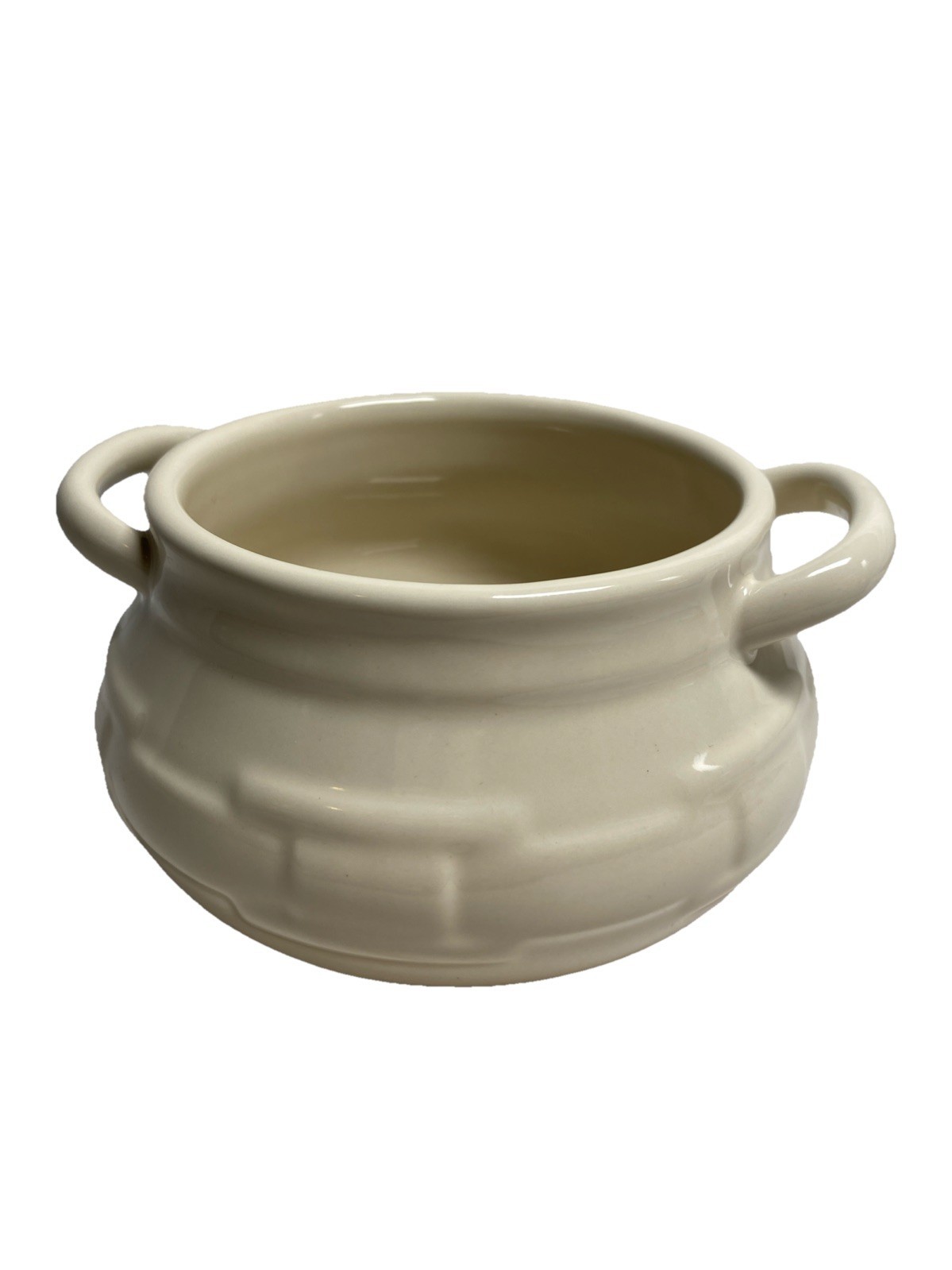 Longaberger Pottery Woven Traditions Small Soup Tureen Ivory 5.5"