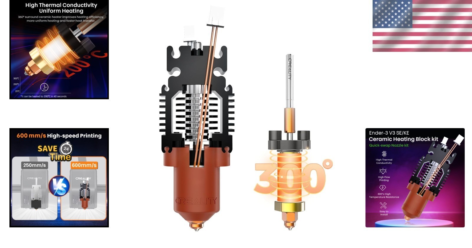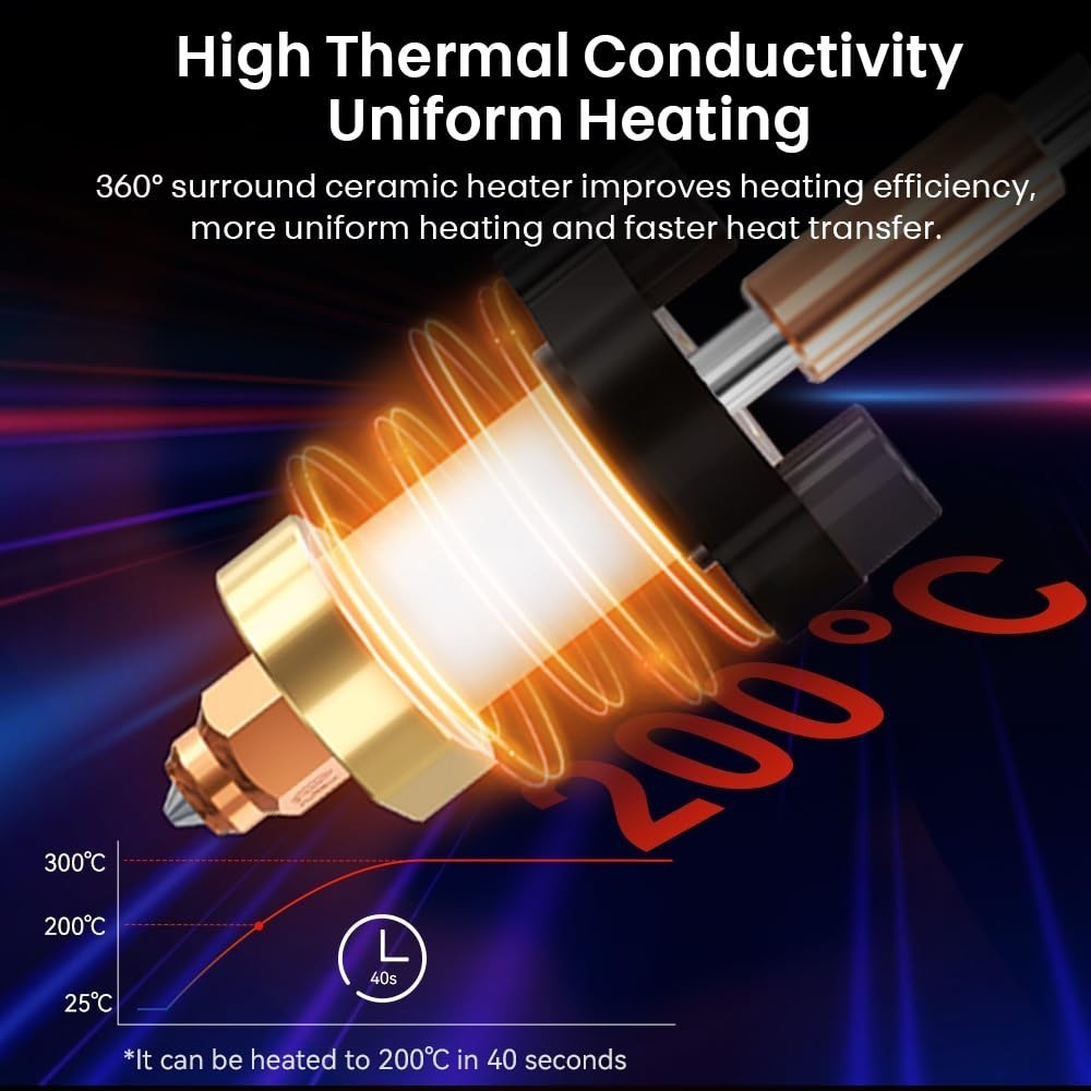 300C Temperature Resistance: Upgrade your printing experiences with a newly enhanced ceramic heating block capable of withstanding high temperatures of 300C, far surpassing the standard heating head limit of 250C.
