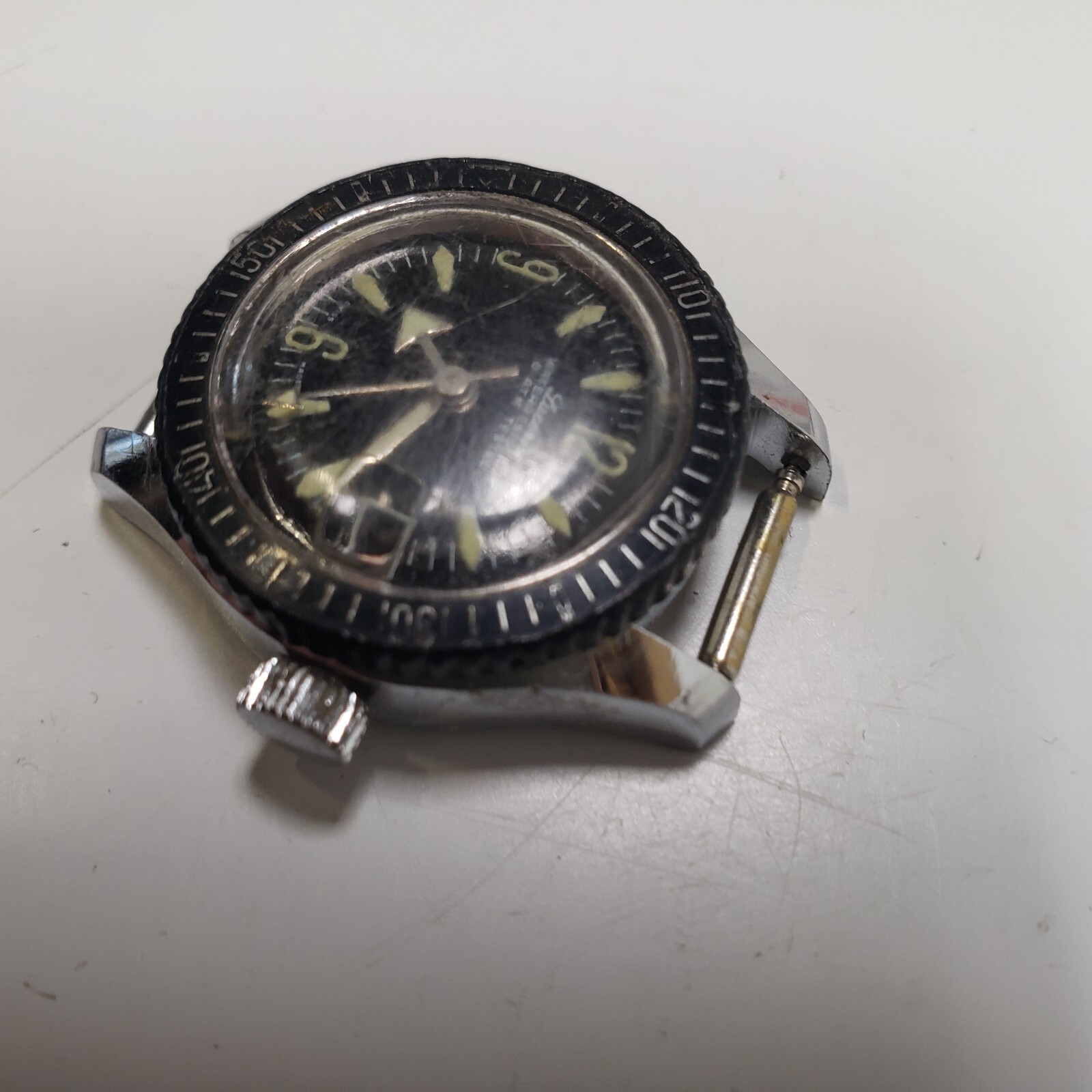 Vintage 60's 1970's Orologio da Donna Lucerna Diver Illuminato Mani Nero Lunetta