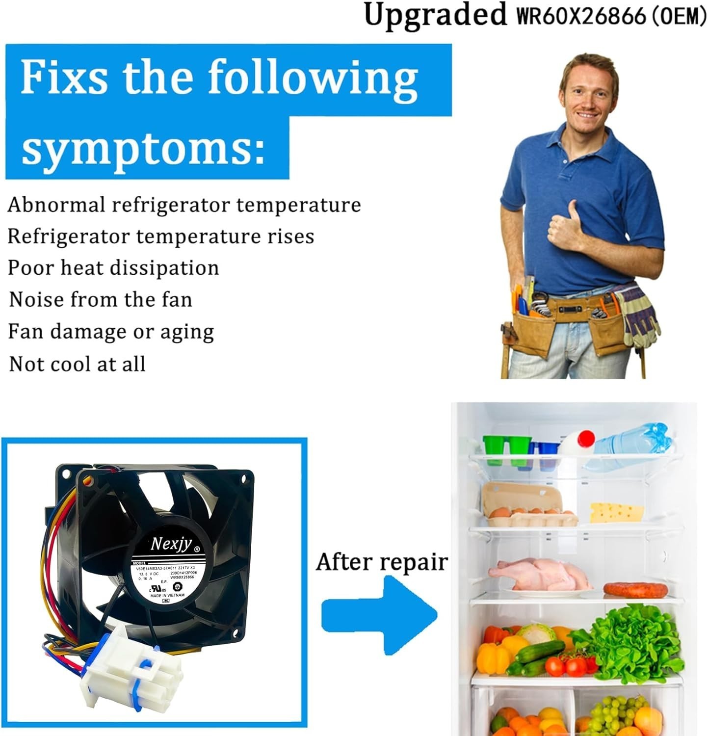 Effortless installation: The WR60X26866 fridge fan motor requires no complex setups or software updates. Enjoy a quick fix to get your refrigerator running smoothly again.