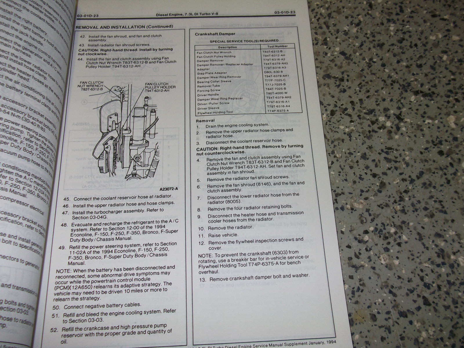 1994 Ford 7.3 L DI TURBO DIESEL SERVICE MANUAL SUPPLEMENT.