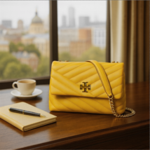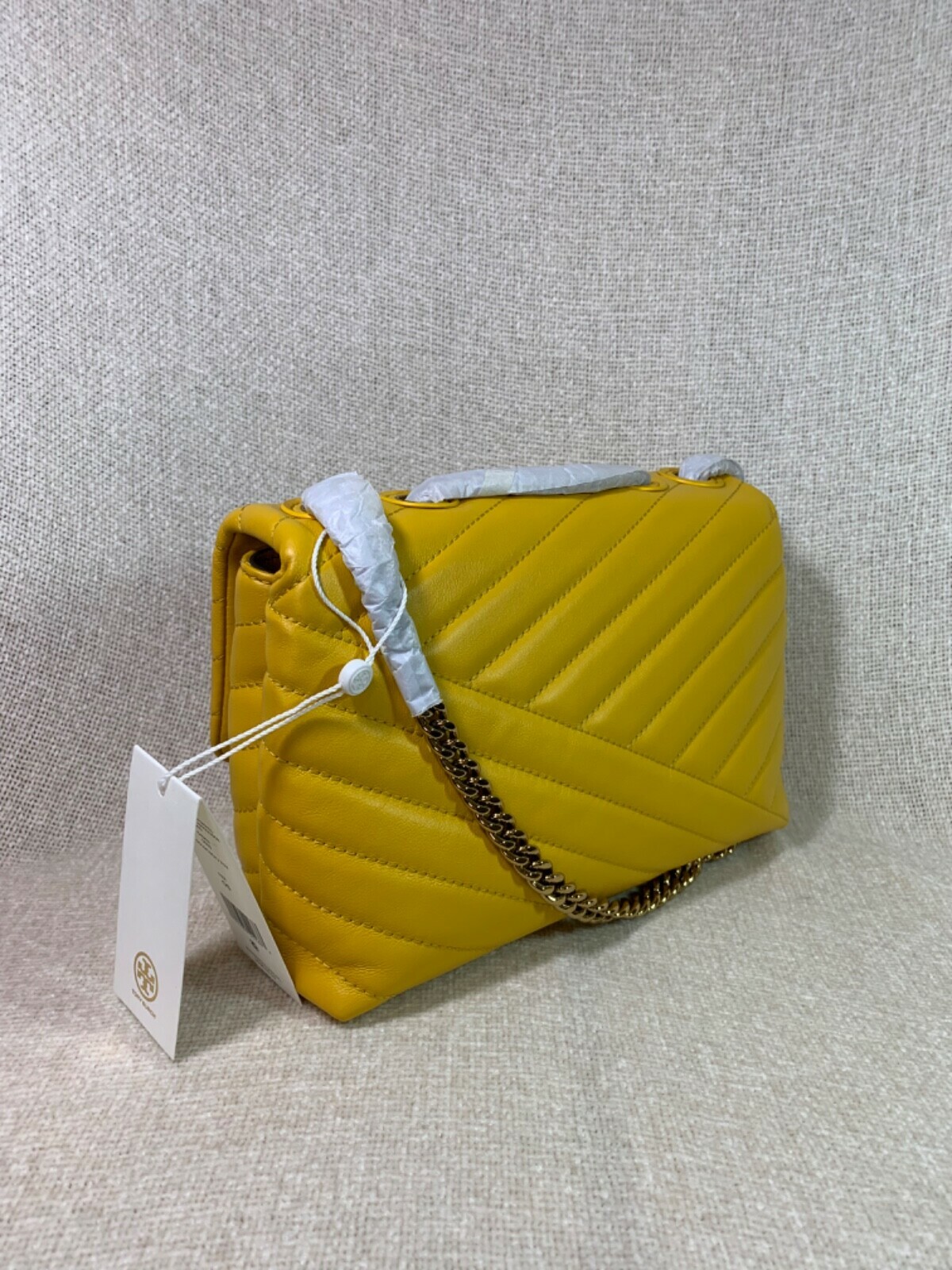 NEW Tory Burch Kira Chevron Yellow Leather Small Convertible Shoulder Bag