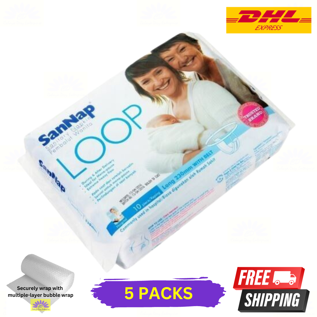 5 X Sannap Loop Maternity Sanitary Napkin with Belt 10s maternity Pads 230mm