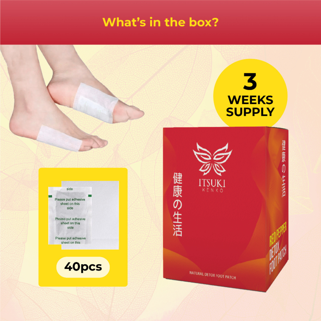 1 X Itsuki Kenko Red Pepper Herbal Foot Pads Patch Detoxifying 40 Patches