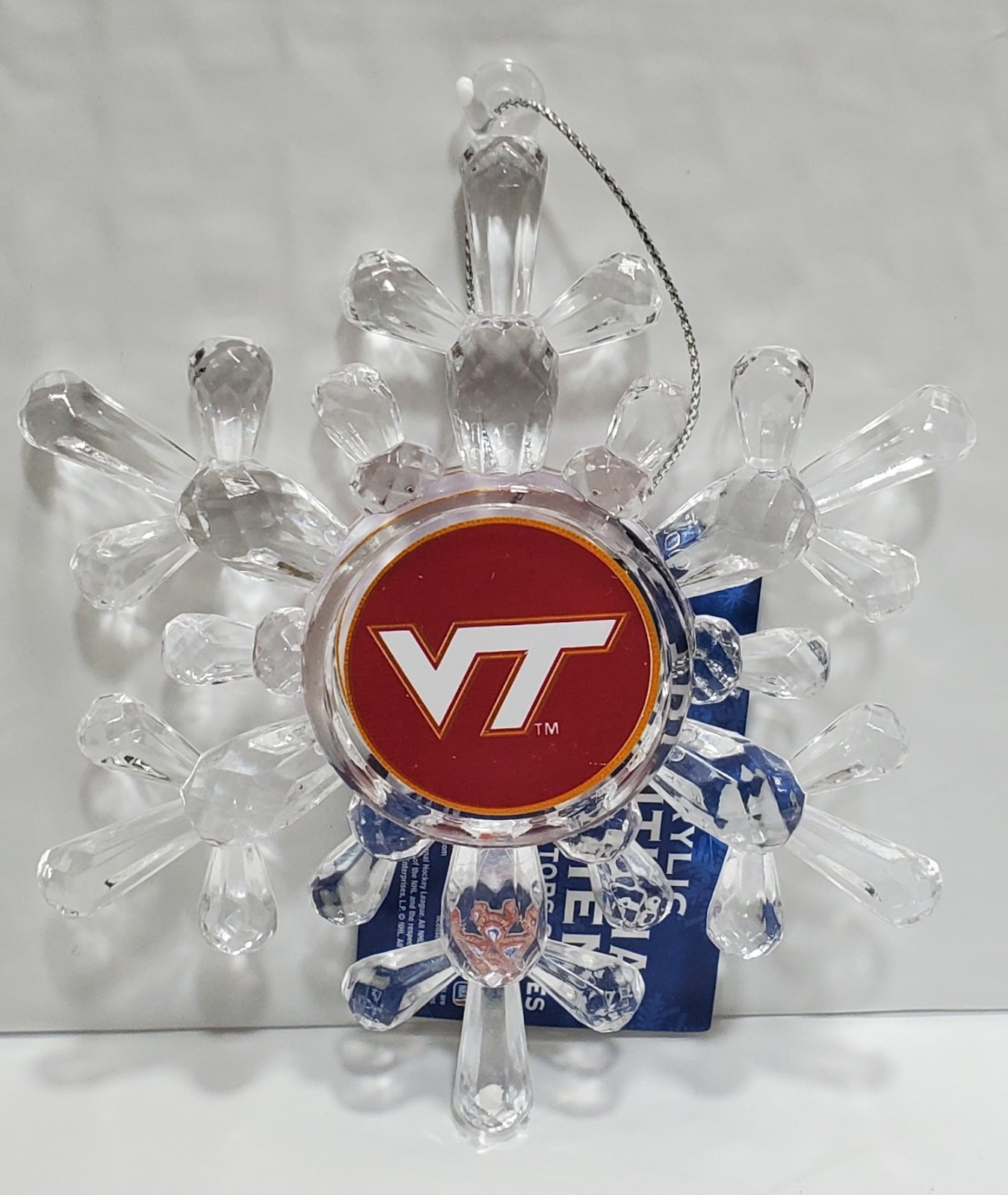 Officially Licensed Virginia Tech Hokies Acrylic Snowflake Ornament.