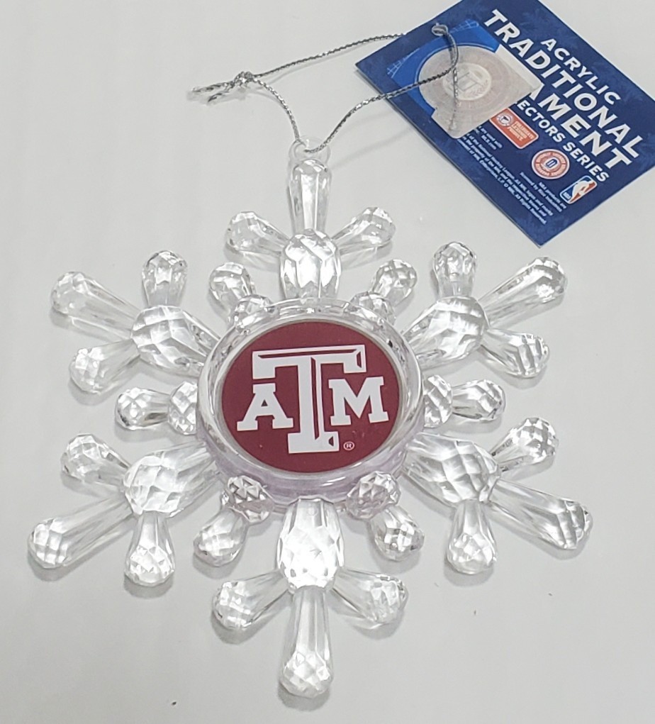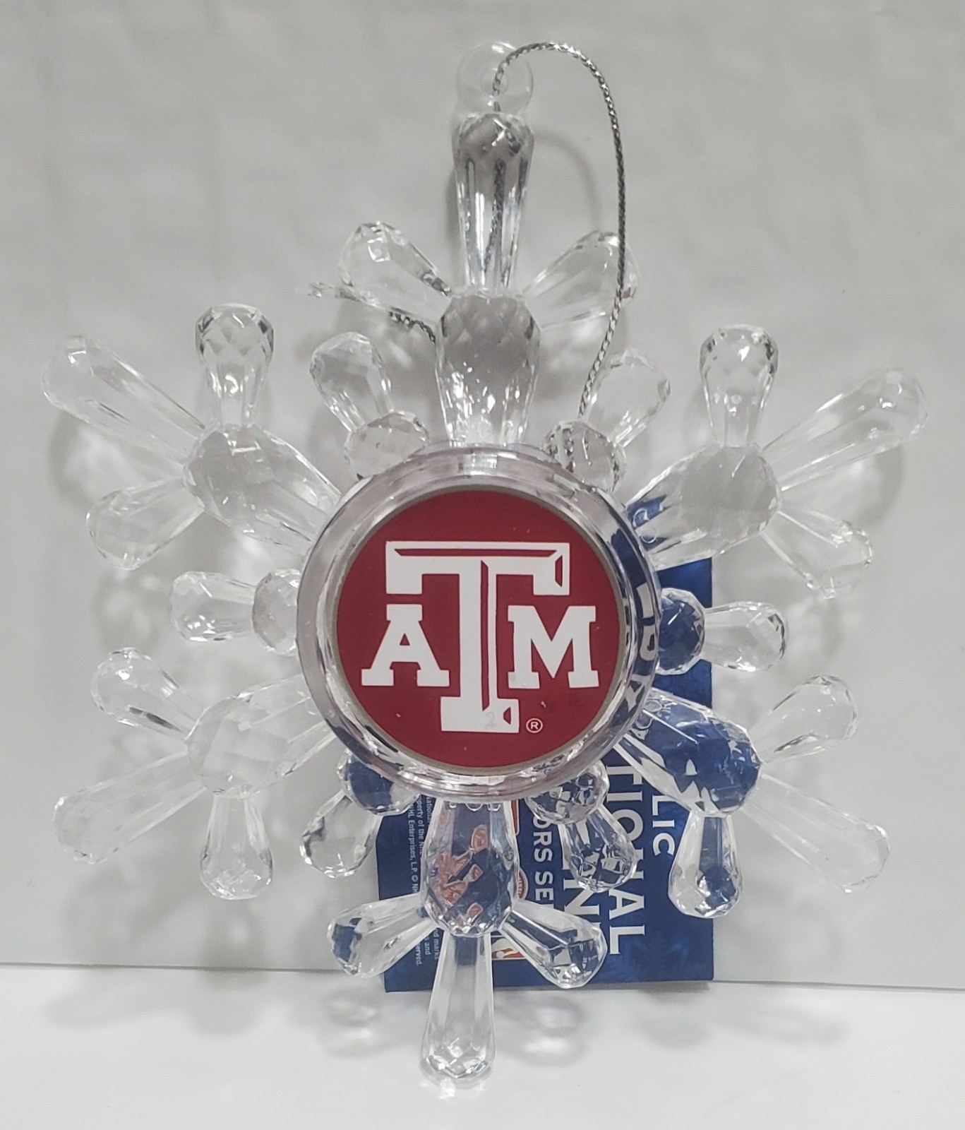 Officially Licensed Texas A M Aggies Acrylic Snowflake Ornament.