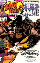 *Parodies: Wolverine in "Gone Fishin'." Script by Peter David, art by Rurik Tyler. The Black Panther in "Black 'n' Blue Panther." Script by Don McGregor, pencils by Mike Harris, inks by Tom Palmer. Galactus in "Hotel Galacticus." Script by Scott Lobdell, art by Dave Hoover. And an even newer version of the X-Men in "Obscurity Legion." Script and pencils by Lobdell, inks by Dennis Jensen. Letter to the editor from Charles Novinskie (Topps Comics). John Byrne wrap-around cover.