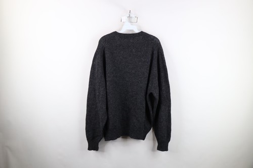 Vintage 90s Streetwear Mens Large Blank Wool Knit Crewneck Sweater Dark Gray