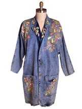 VTG 1980s Laura Rogers Acid Wash Painted Denim Embellished Jacket Sz SโXL
