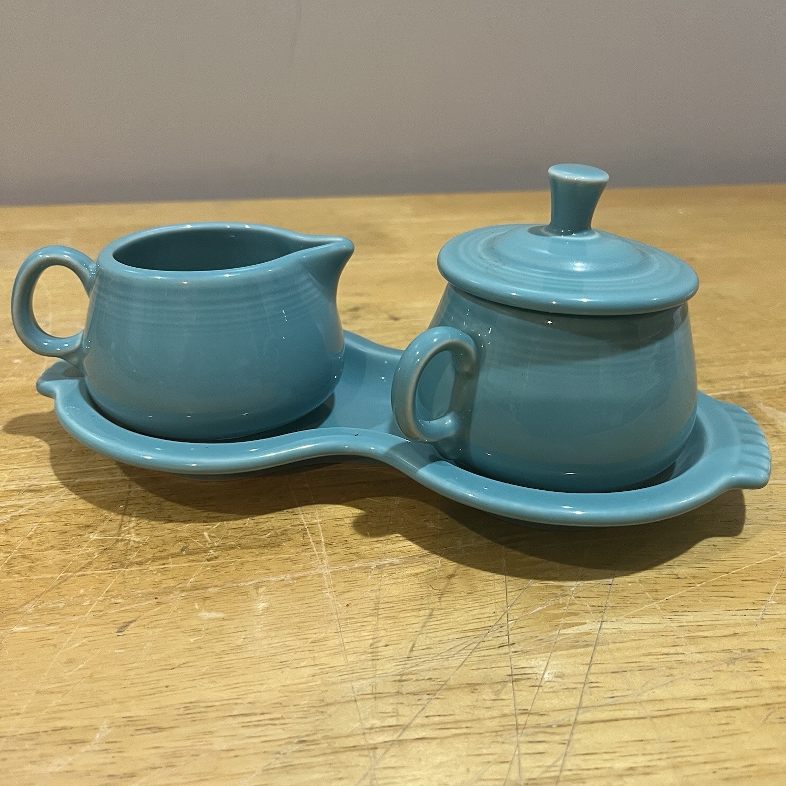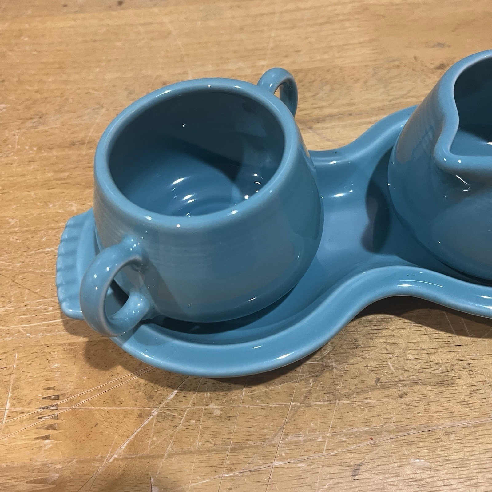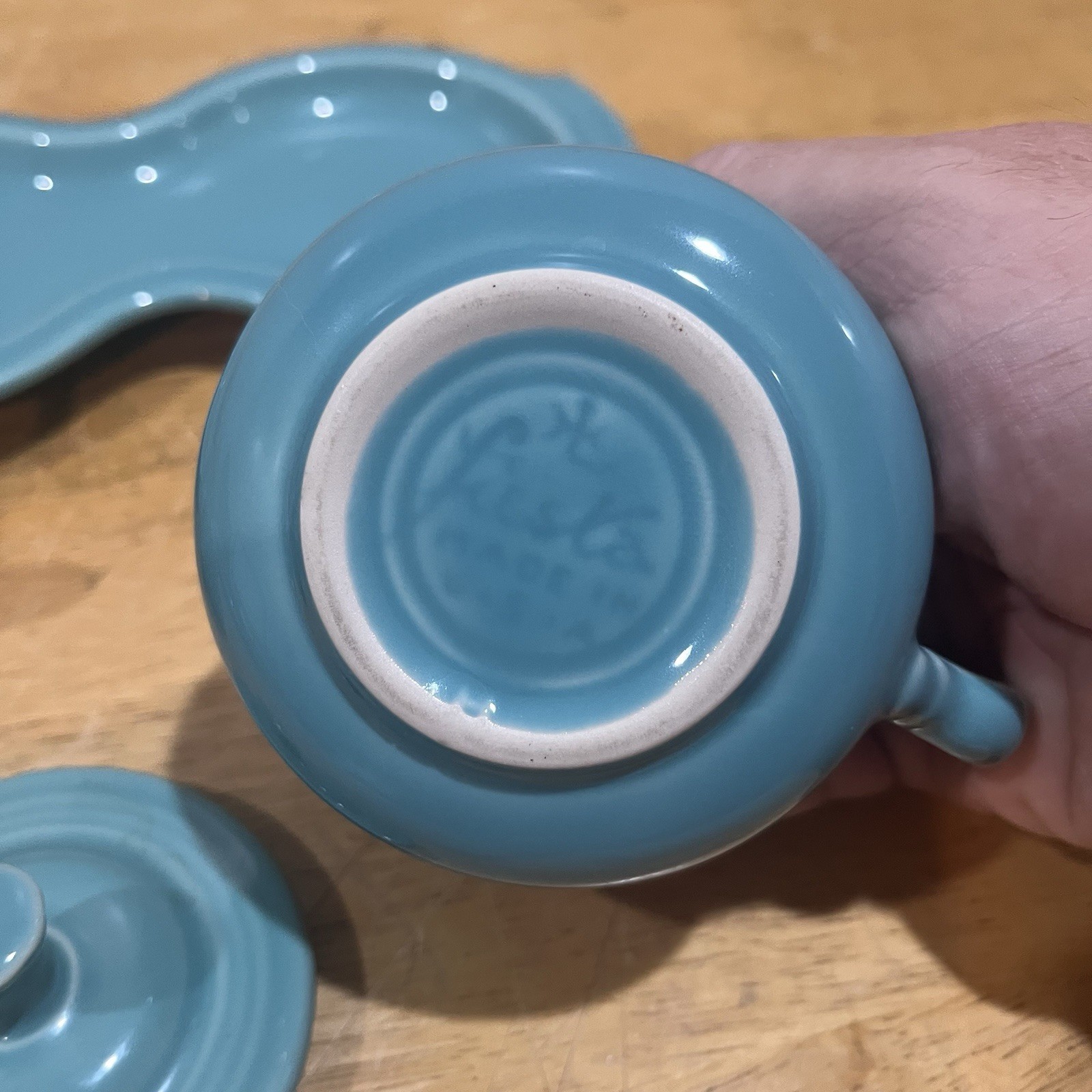 Vintage FIESTA WARE Turquoise Sugar & Creamer Set - Coffee/Tea - Complete w/Tray