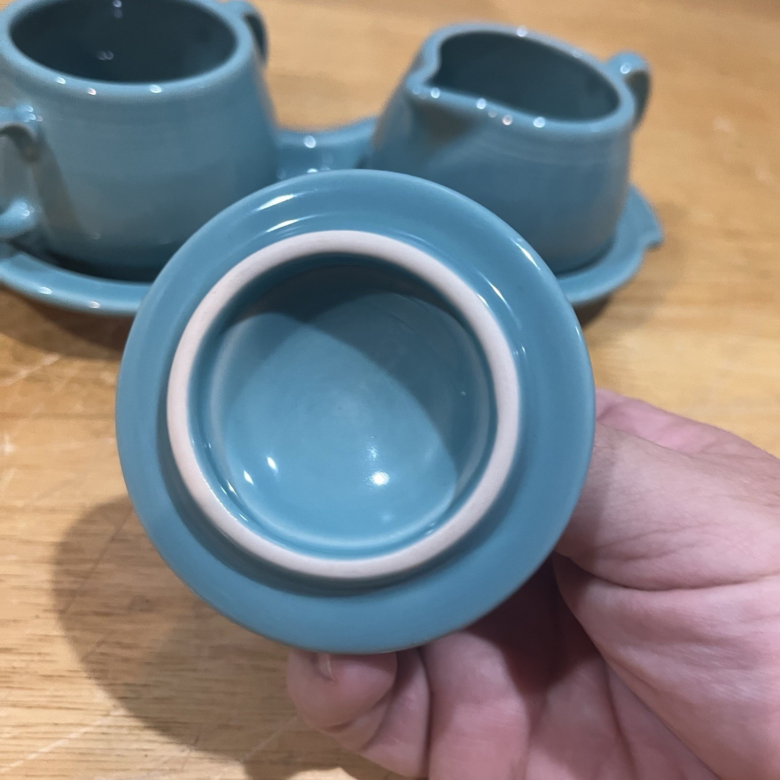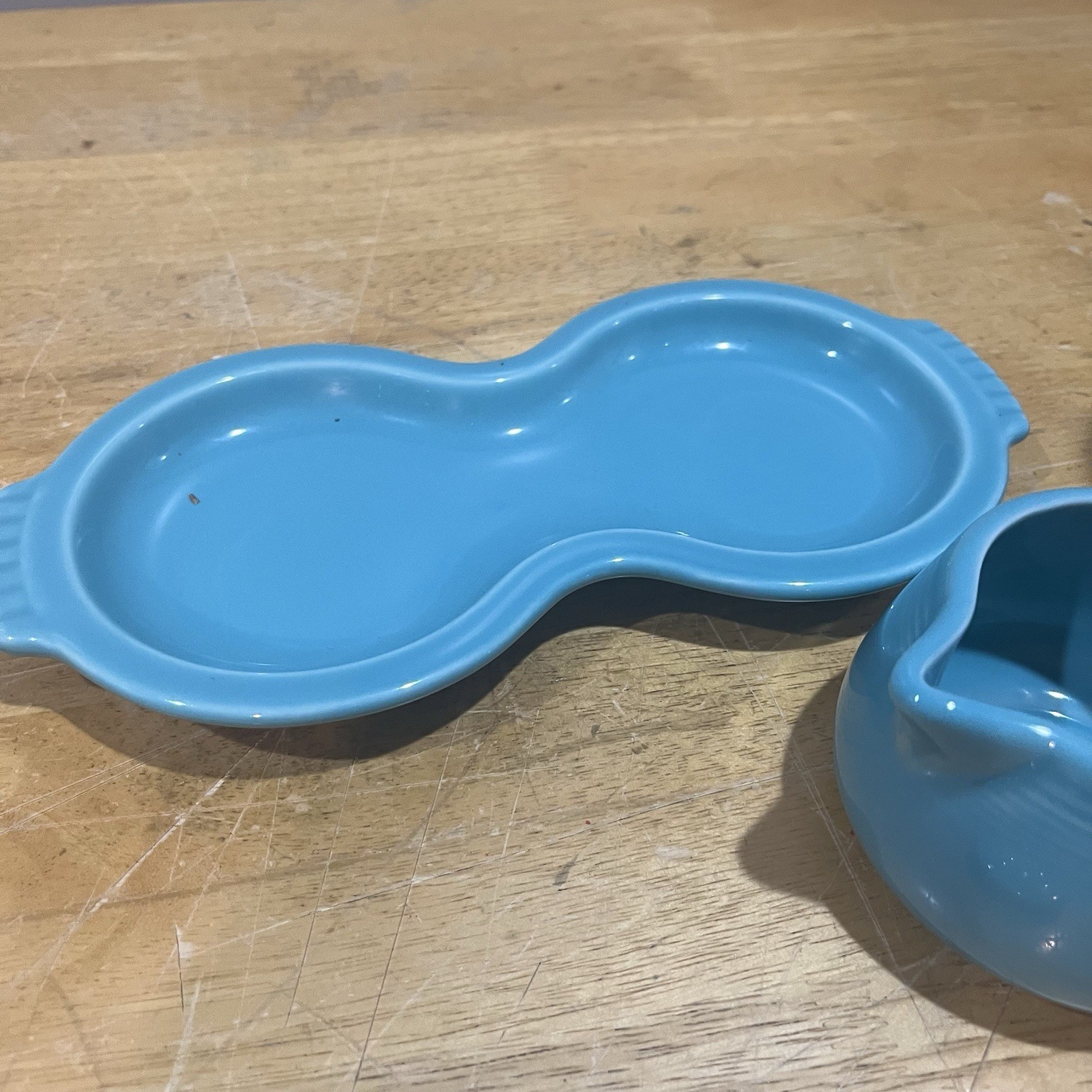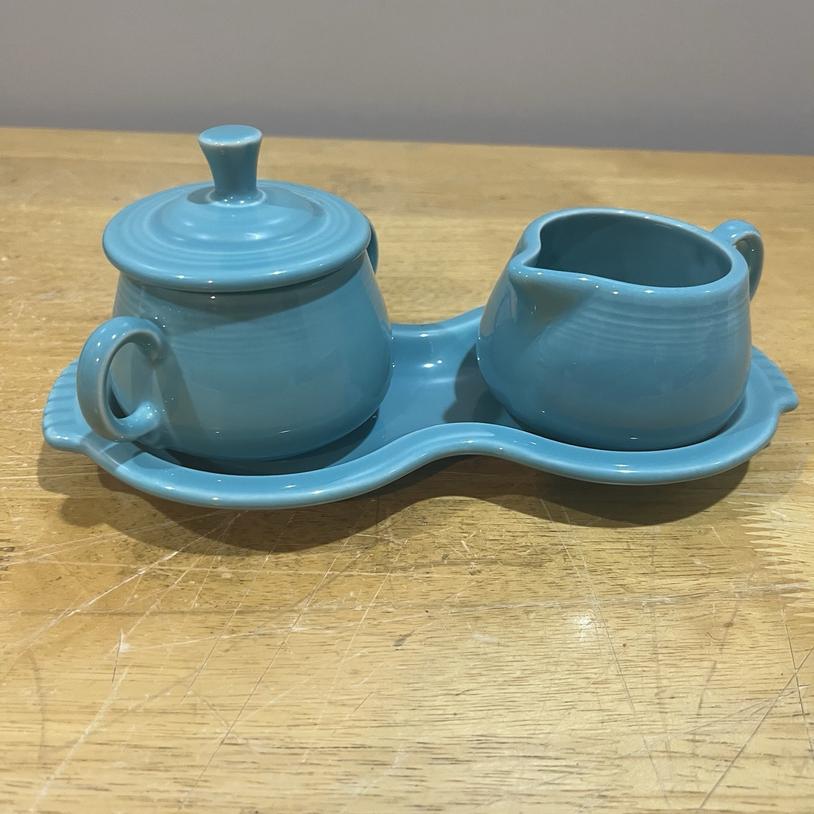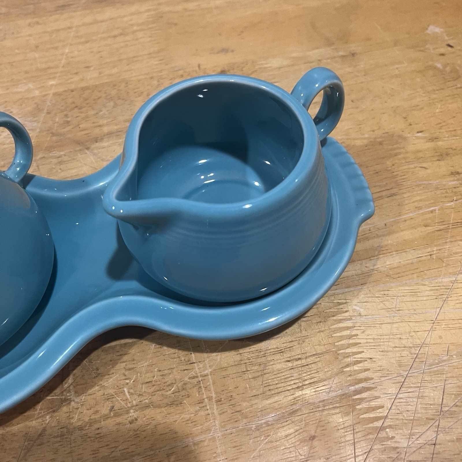 Vintage FIESTA WARE Turquoise Sugar & Creamer Set - Coffee/Tea - Complete w/Tray