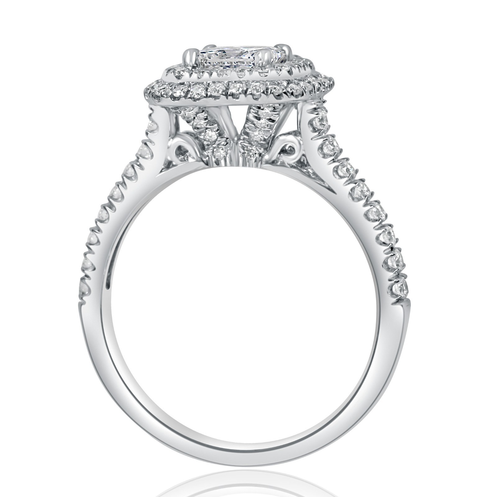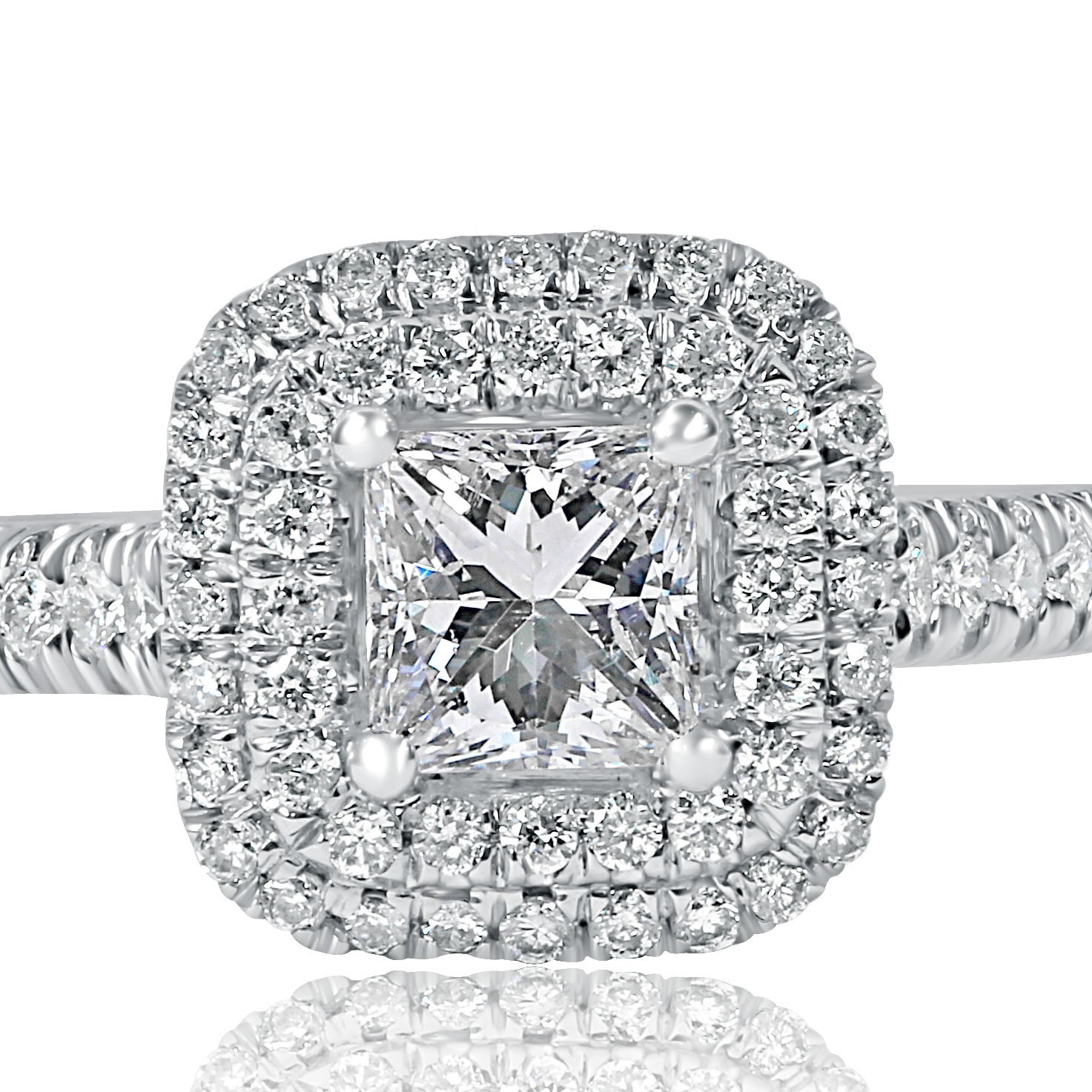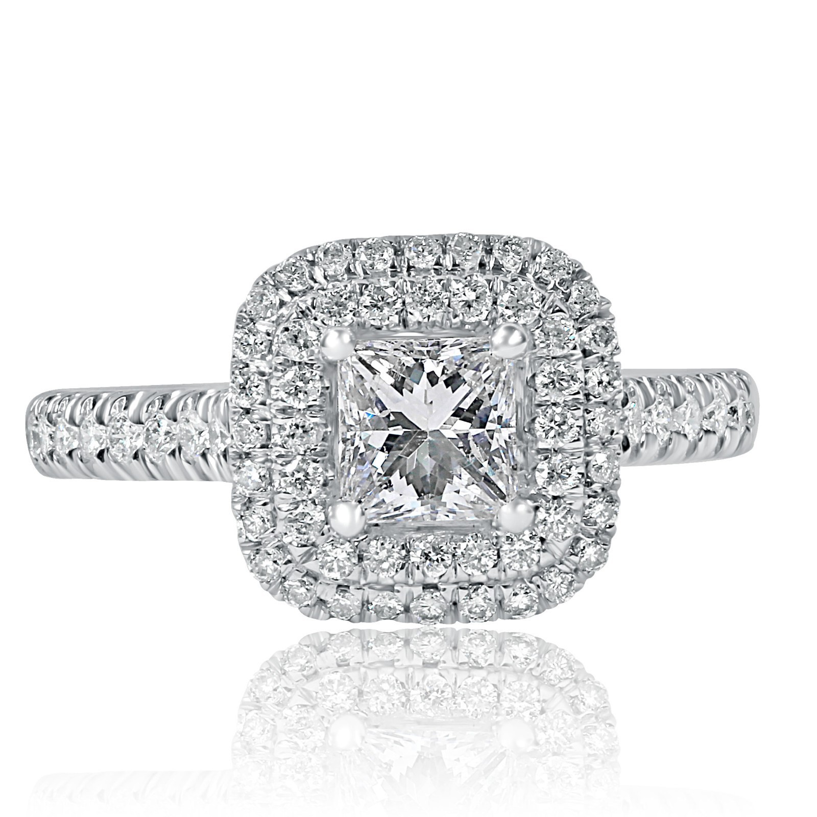 Double Halo 1.11 TCW Princess Cut Diamond Engagement Ring 14k White Gold