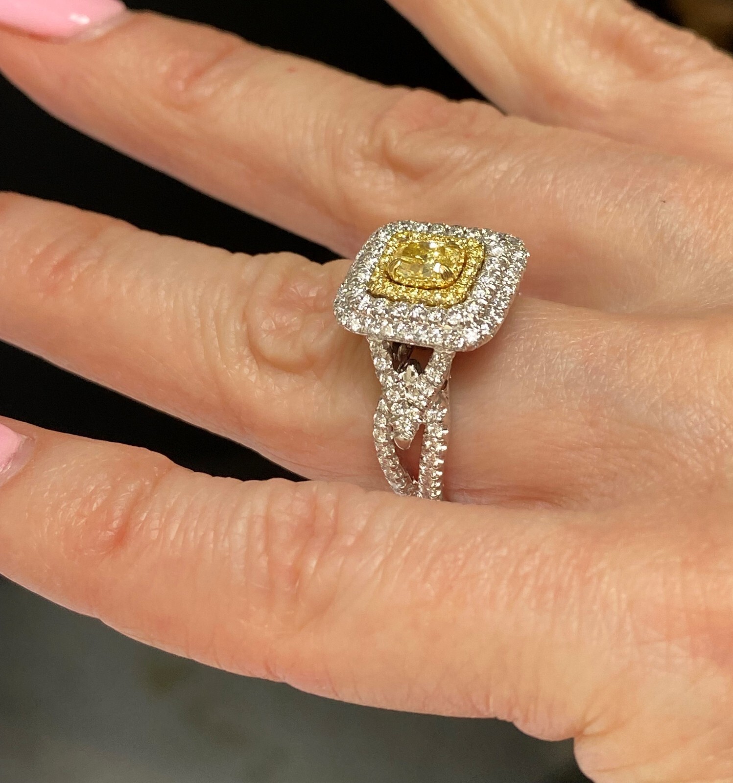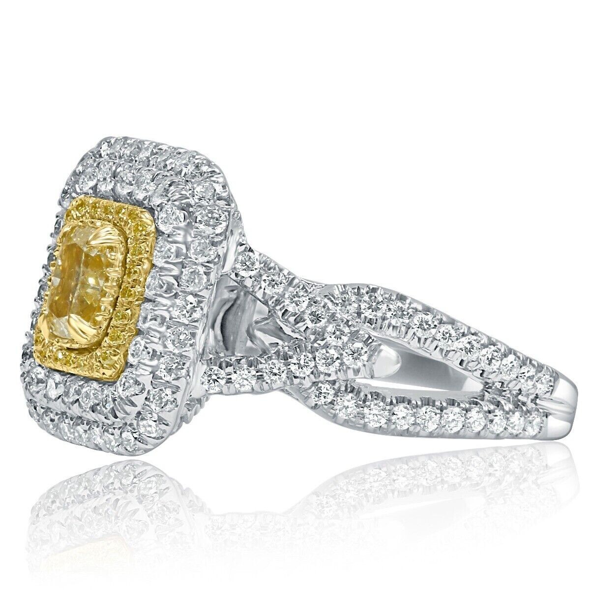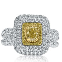 2.01 Ct Cushion Natural Fancy Yellow Diamond Proposal Ring 18k White Gold