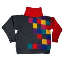 VTG 1980s Wool Colorblock Turtleneck Sweater Unisex Sz M L Retro