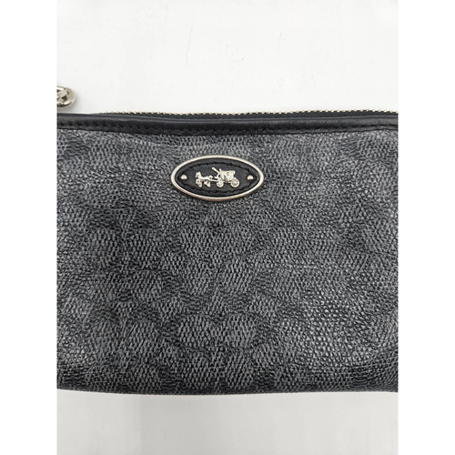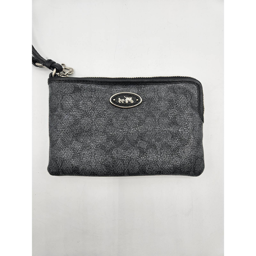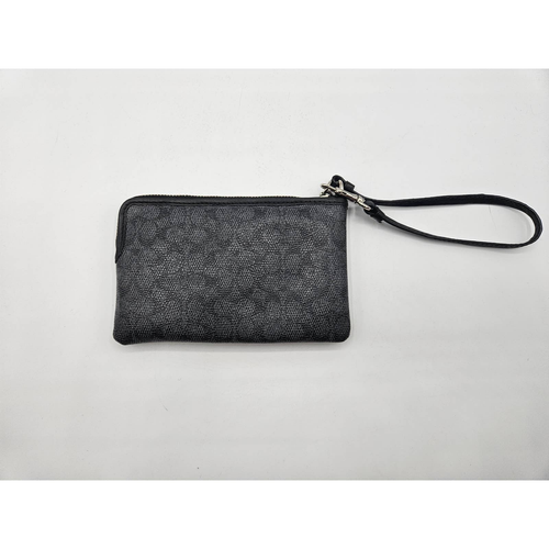 Coach Pebbled Leather Wristlet Wallet Gray with Black Trim