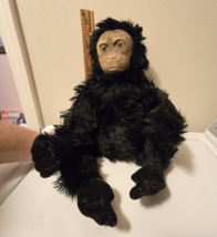 Vintage 11.5-inch gorilla plush toy featuring soft black faux fur and a firm, flocked velvety face. The face is highly detailed, with very realistic, life-like features and an expressive, anthropomorphic (human-like) appearance.