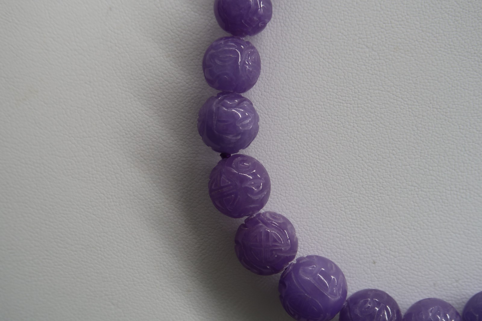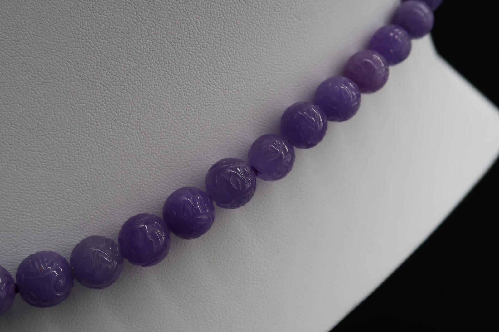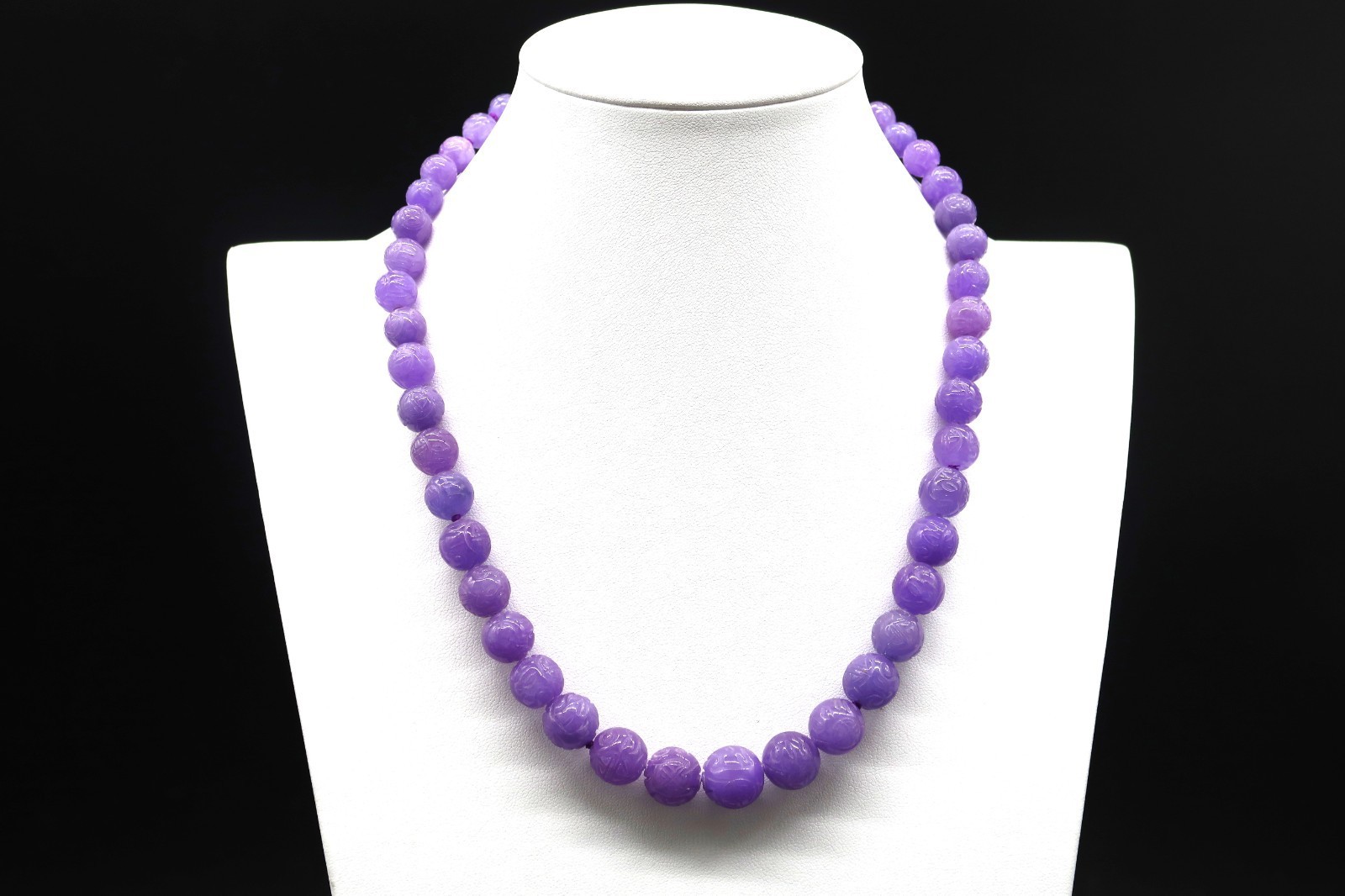 Vtg Carved Purple Jadeite Jade Necklace and similar items